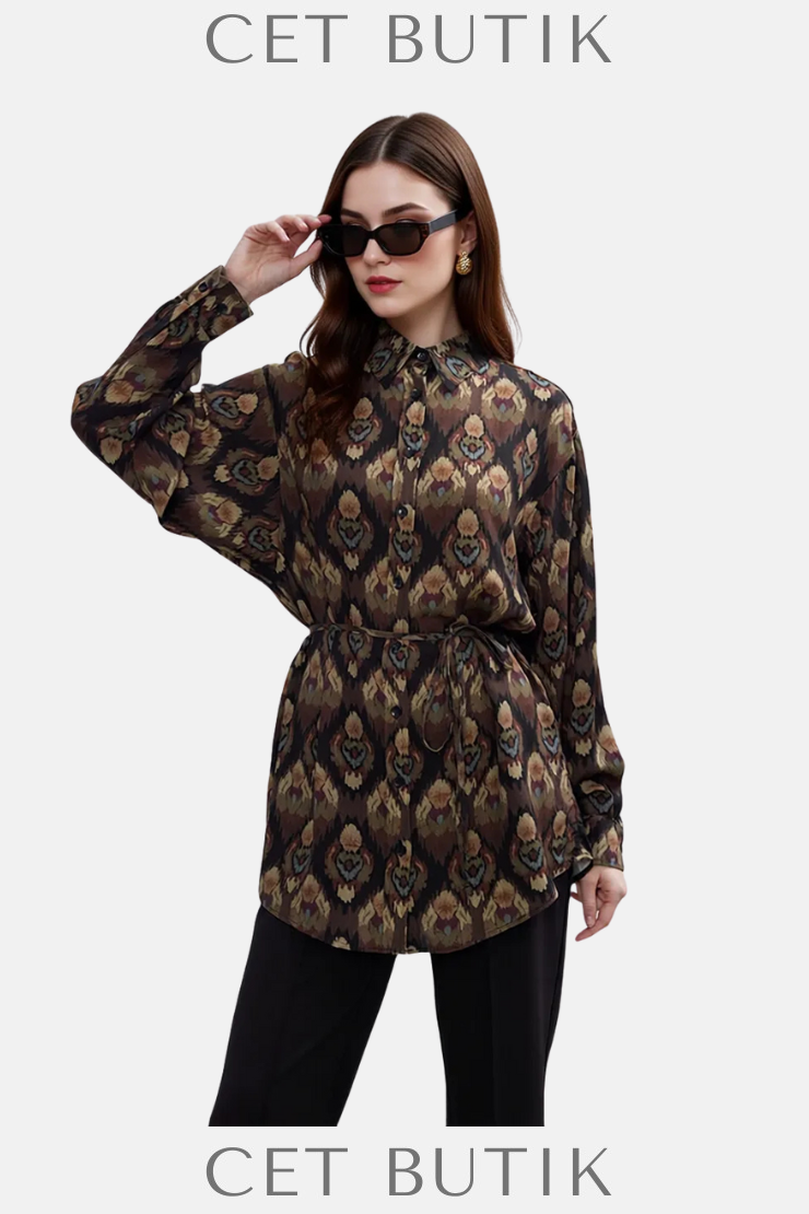 Be Blue Etnik Desen Vintage Gömlek – Kadın %100 Viskon