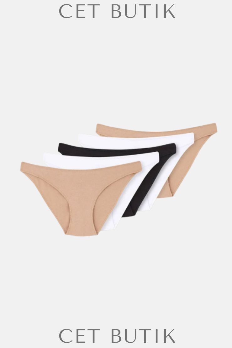 DAGİ 5100KC — Kadınlar için yüksek bel slip külot 5’li paket, karışık renk seçenekleriyle (siyah, ten, beyaz, bordo, gri). Yüksek bel tasarımı ile karın bölgesini nazikçe kavrar, dikişsiz yapısıyla kıyafet altında iz bırakmaz. %95 pamuk ve %5 elastan karışımı kumaşıyla konforlu bir oturuş sunar.