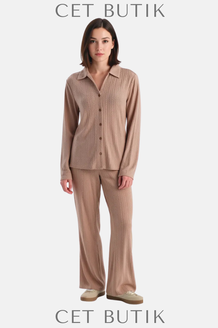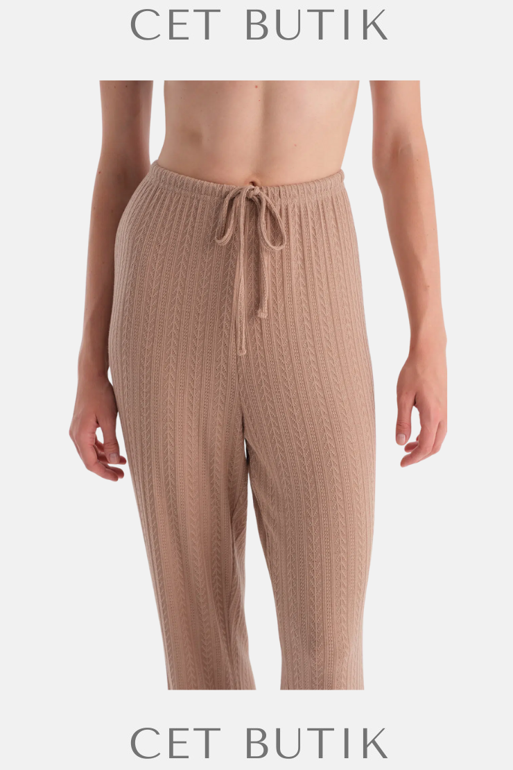 DAGİ Bej Örgü Detaylı Pantolon – Şık & Rahat Kadın Alt Giyim