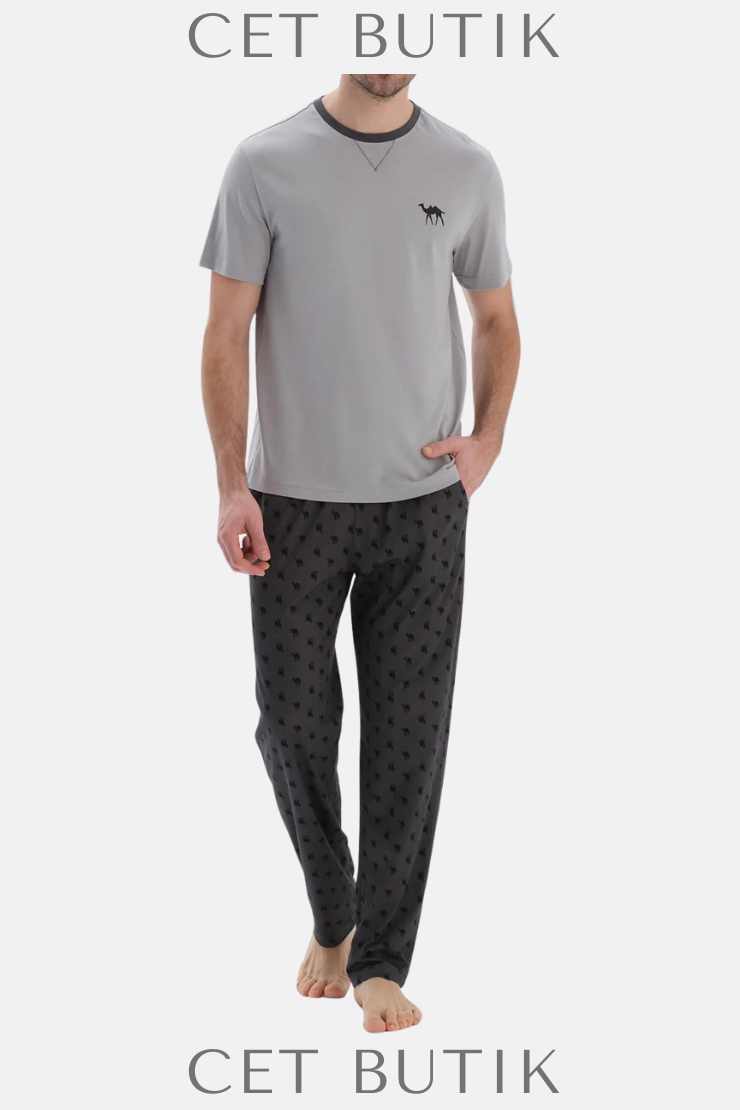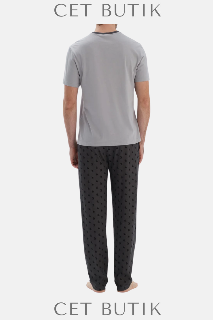DAGİ Gri Kısa Kollu Baskılı Pijama Takımı
