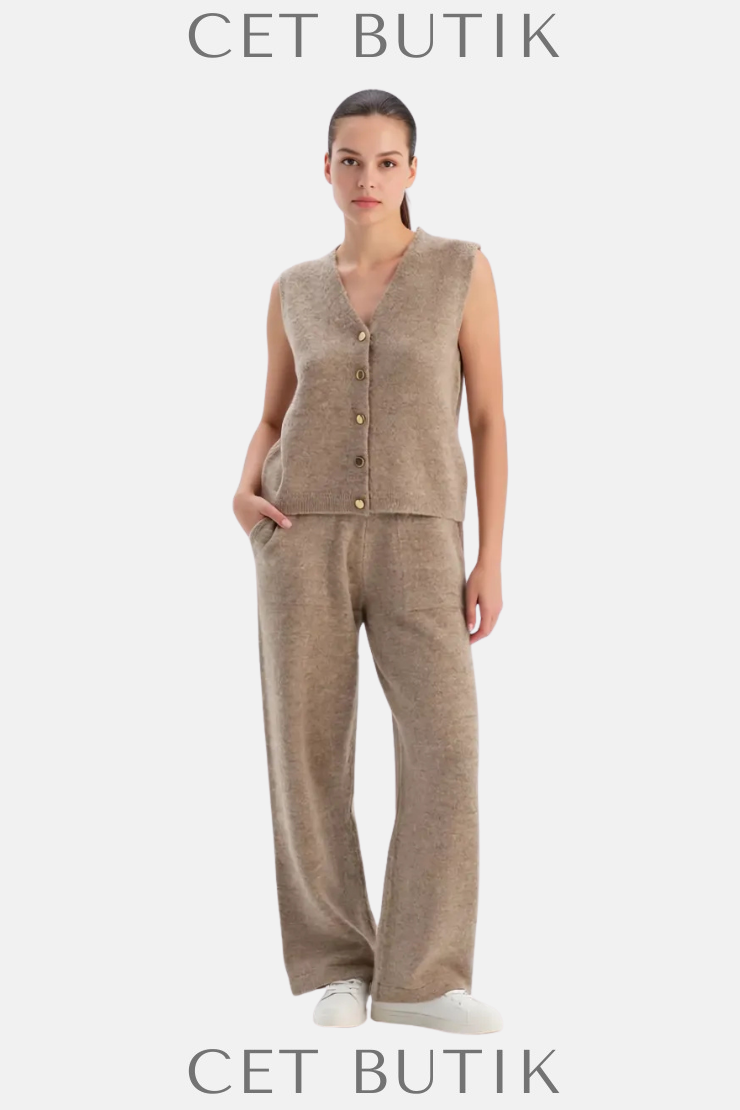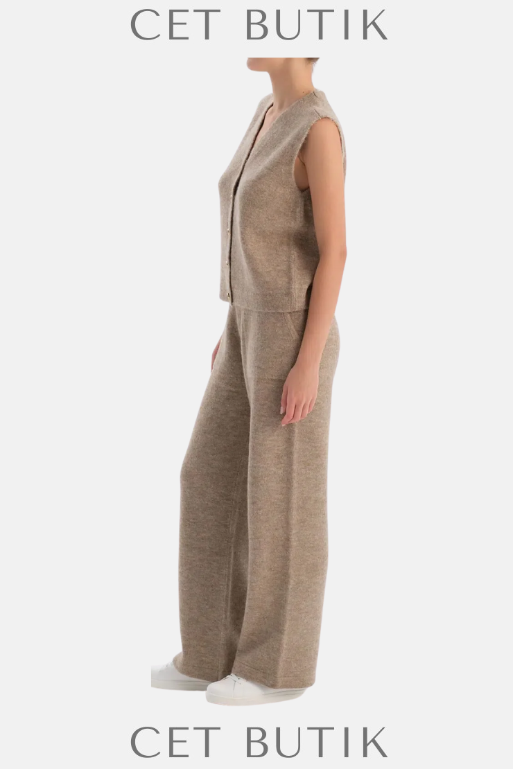 DAGİ Kadın Cepli Bol Paça Yünlü Pantolon, zarif duruşu ve yumuşak dokusuyla günlük giyimden ofis stiline kadar her kombine uyum sağlar.