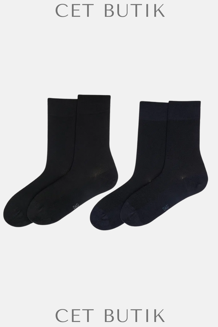 DAGİ Lacivert & Siyah Erkek 2’li Bambu Çorap – Pirinç Dokulu