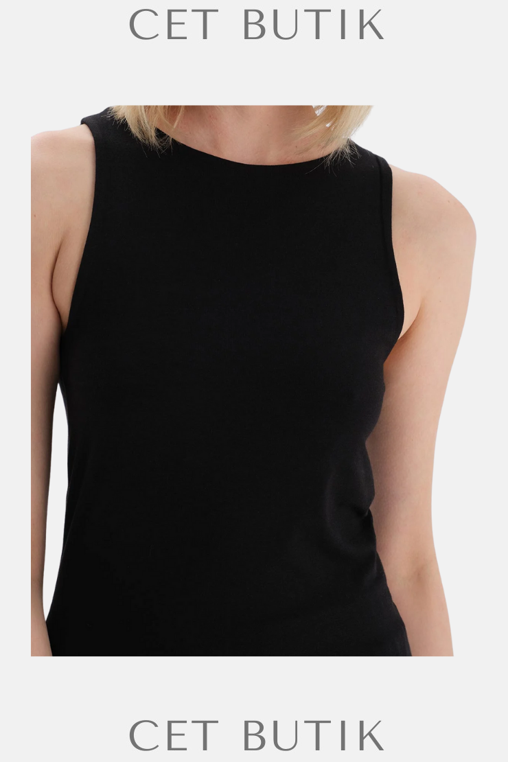 Halter yaka stiliyle omuz detayınızı vurgularken, minimal tasarımı ile dikkat çeker.