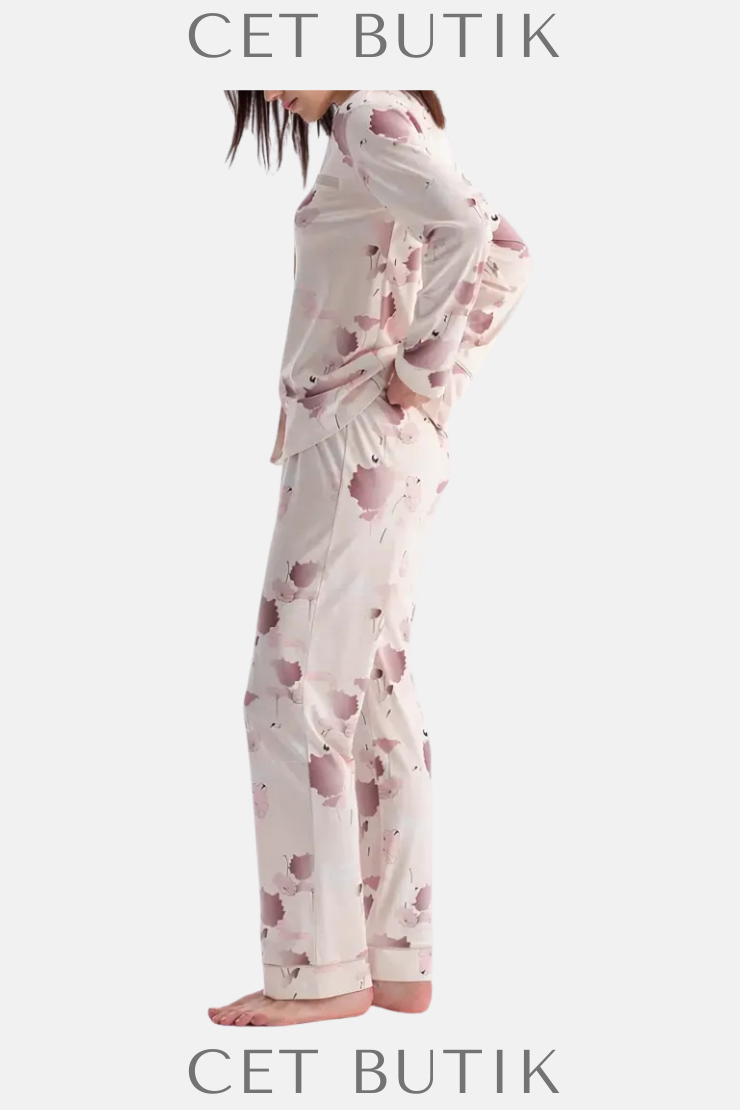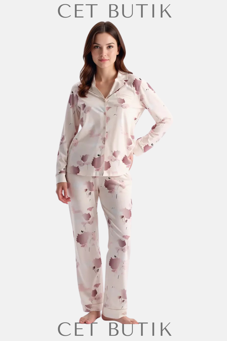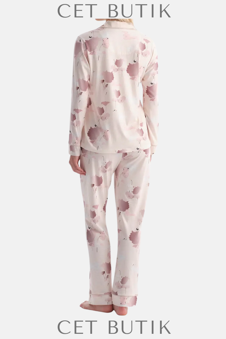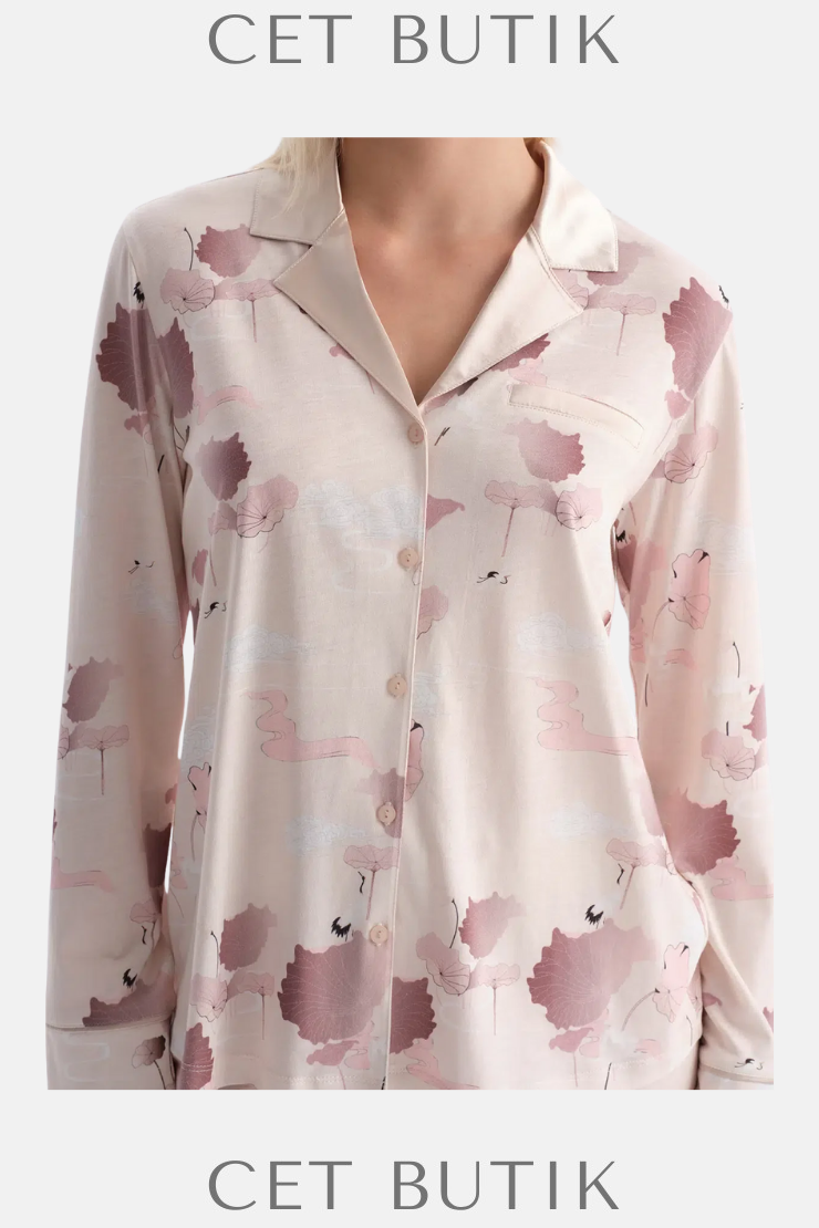 DAGİ Somon Çiçek Desenli Gömlek Pantolon Takım