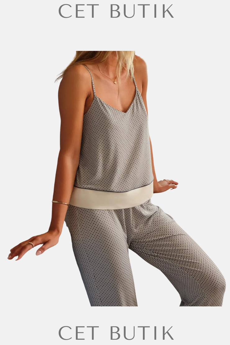 Dagi’nin 25SW17807BB kodlu bu pijama takımı, lacivert zemin üzerine metraj desenli baskısıyla dikkat çeker. İnce askılı atlet üst ve uzun paçalı pantolonuyla hem konforlu hem şık bir uyku deneyimi sunar.
