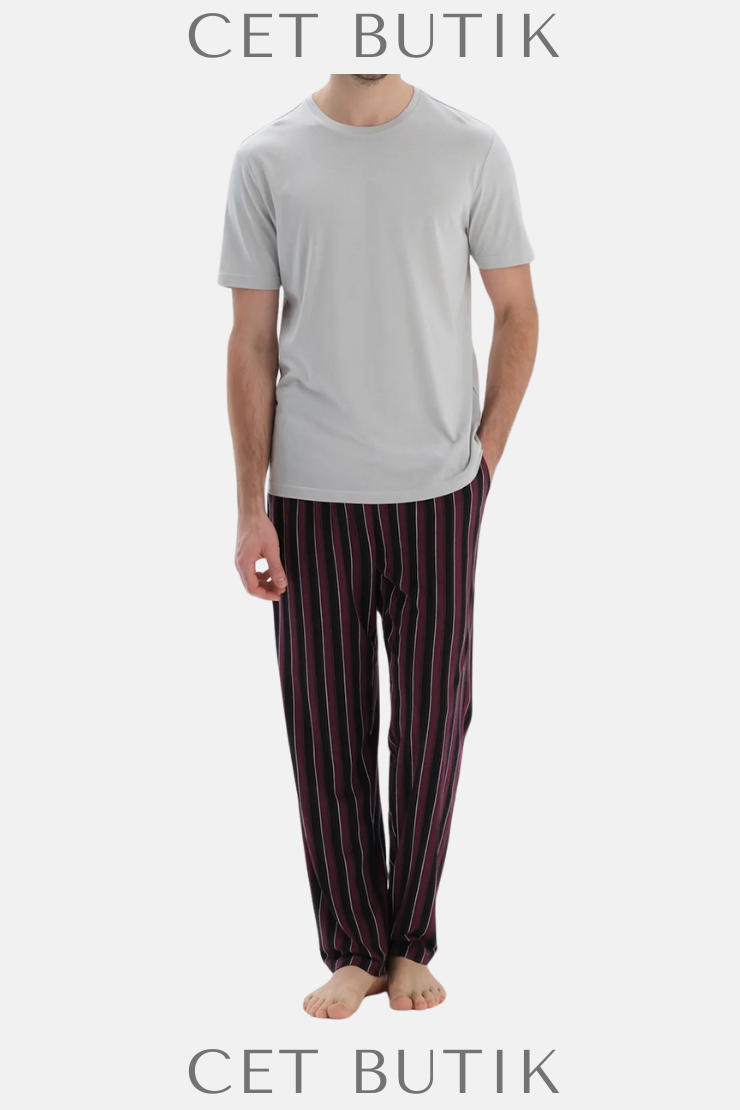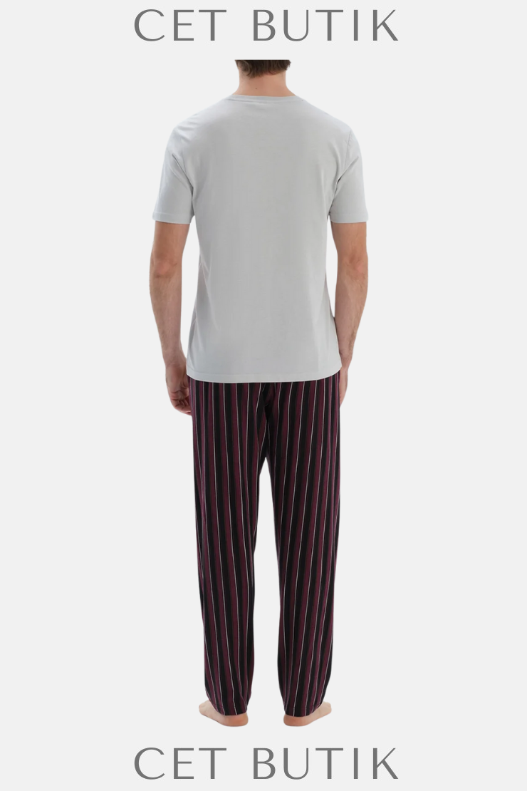 Dagi Açık Gri Çizgili Pijama Takımı – Kısa Kollu Tişört & Pantolon