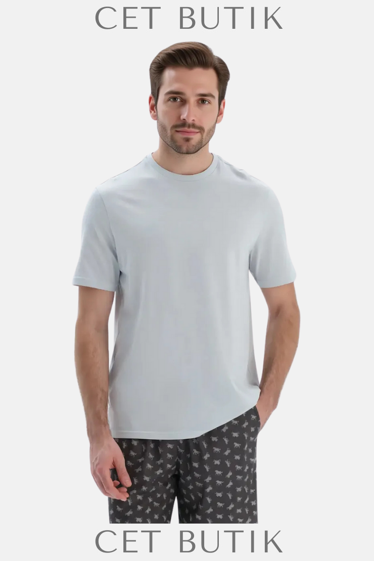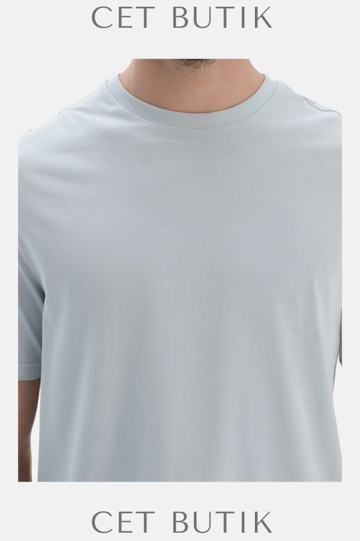Dagi Açık Gri Kısa Kollu Bisiklet Yaka Basic Tişört – %100 Pamuk