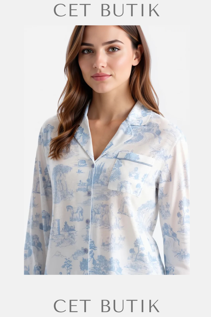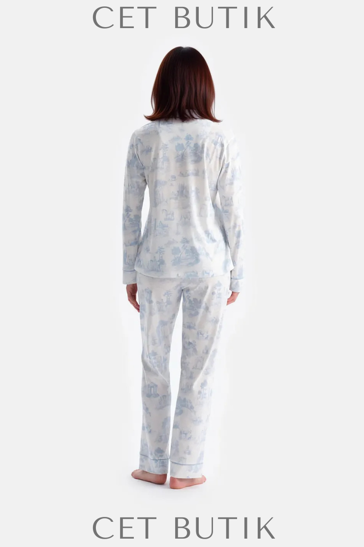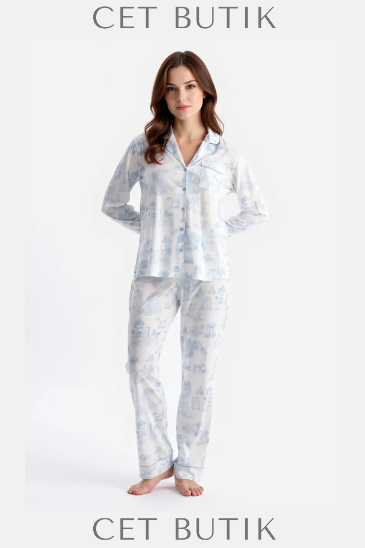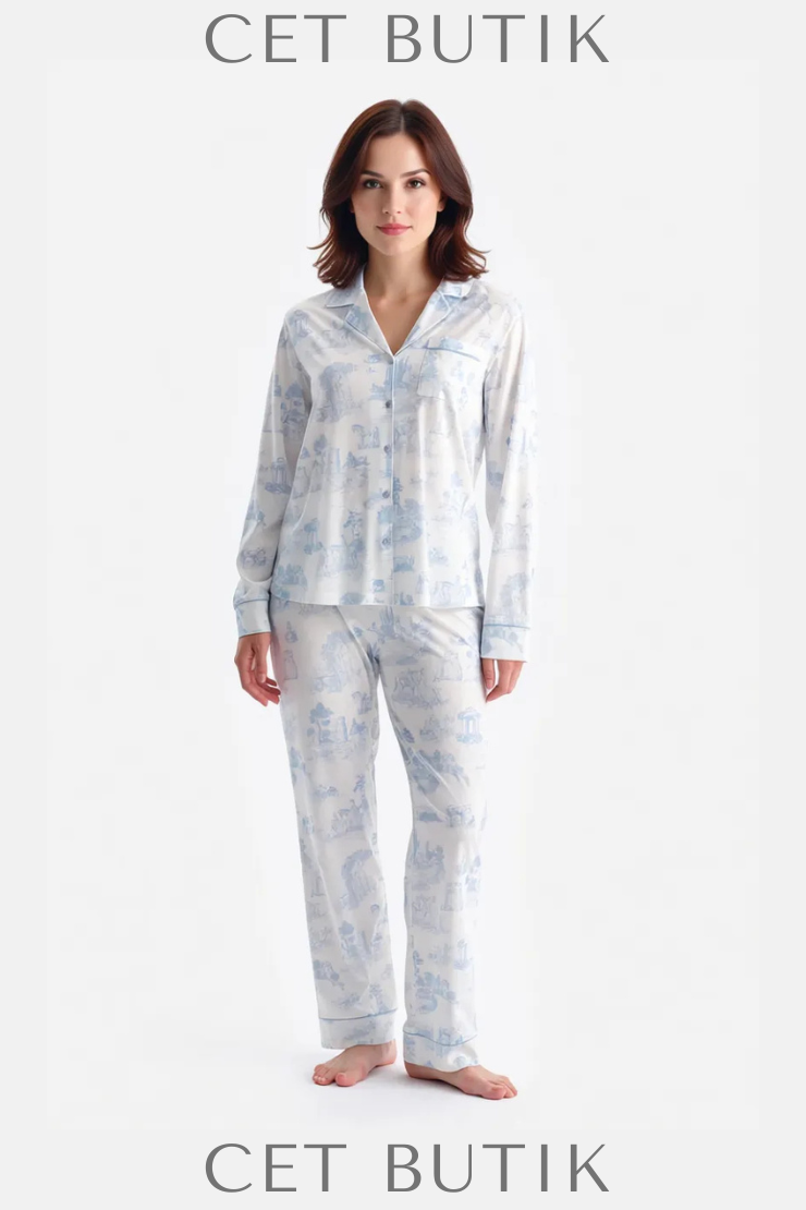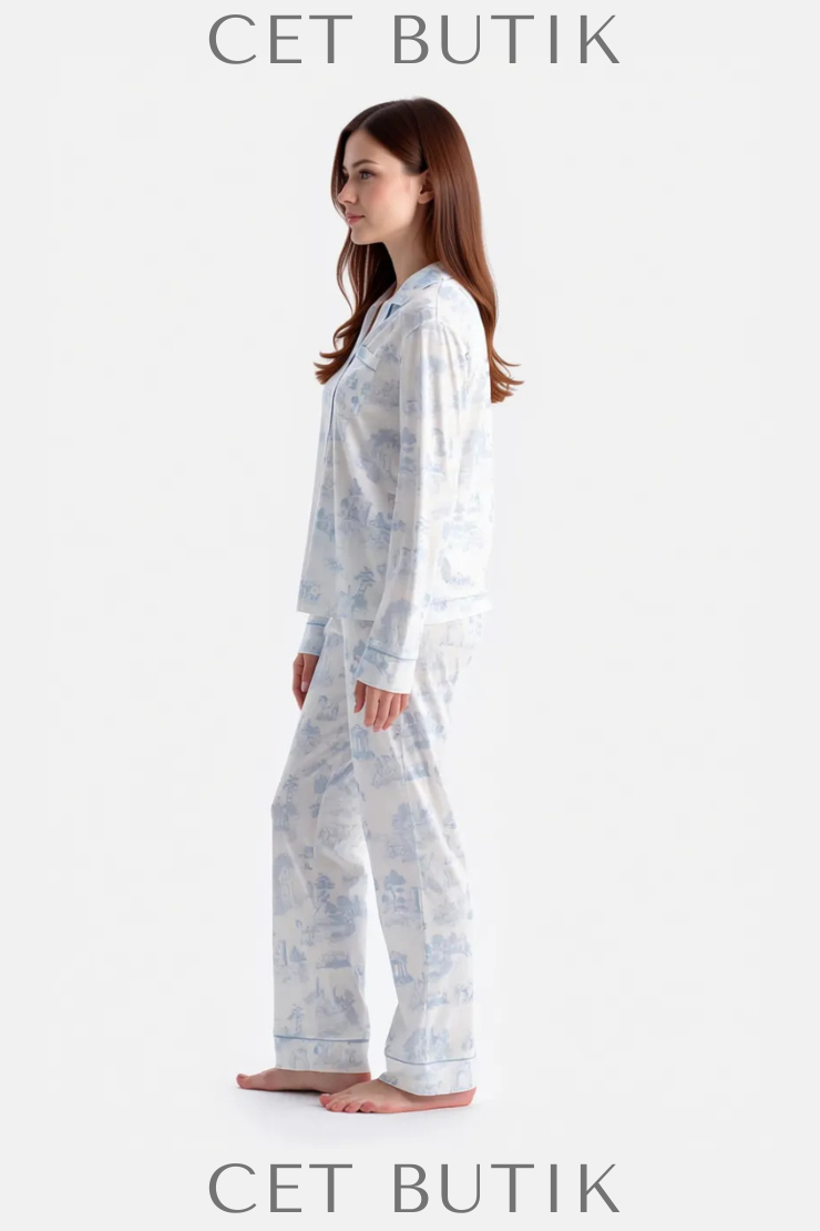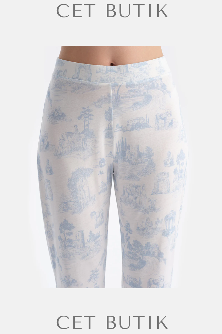 Dagi Açık Mavi Manzara Baskılı Gömlek & Pantolon Takımı – Süprem Konfor