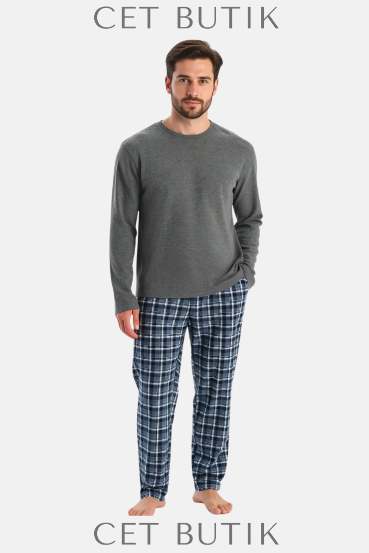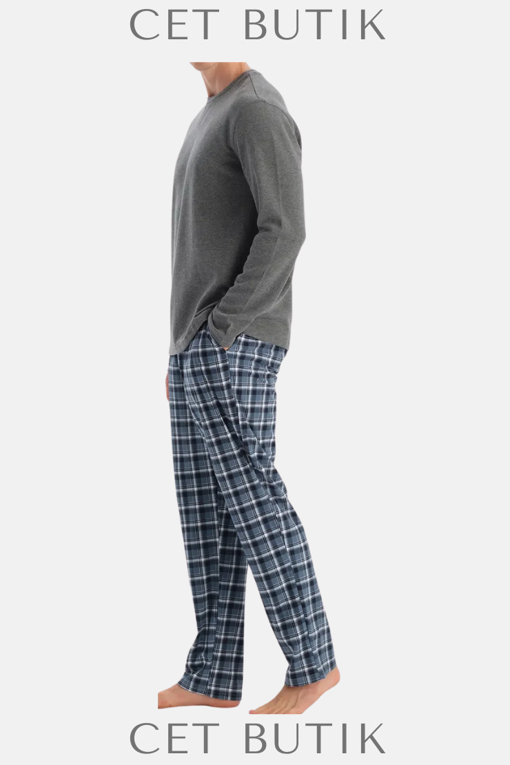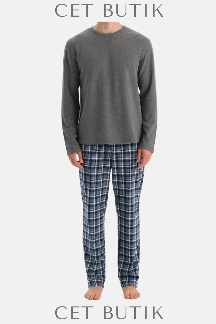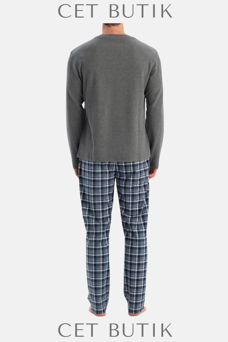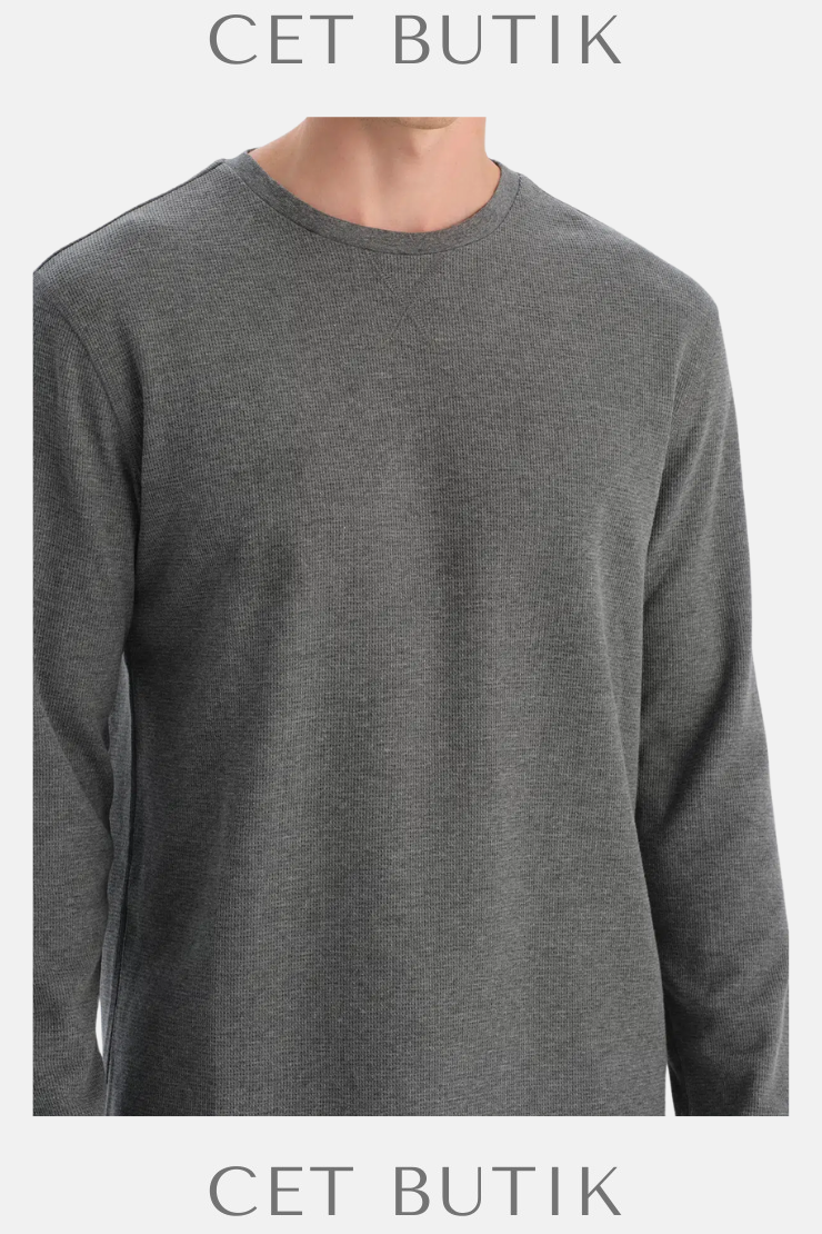 Dagi Antrasit Melanj Waffle Pijama Takımı – Uzun Kollu Tişört & Pantolon