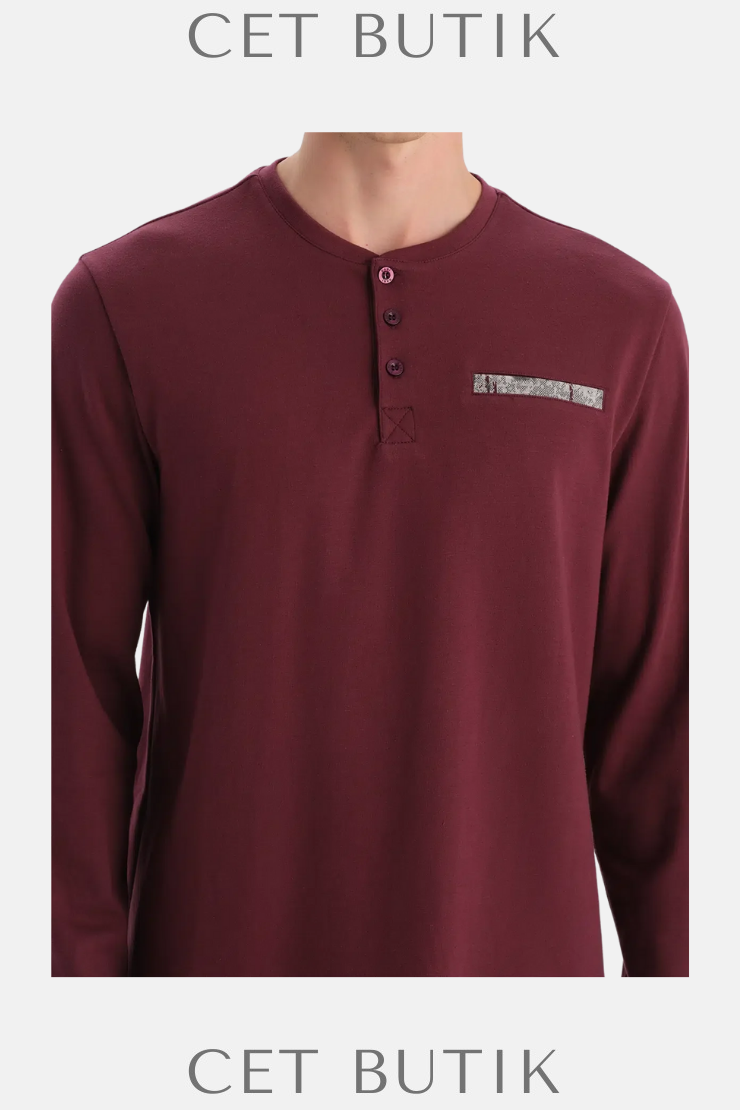 Dagi Bordo Uzun Kollu Pat & Cep Detaylı Tişört + Pantolon Takım