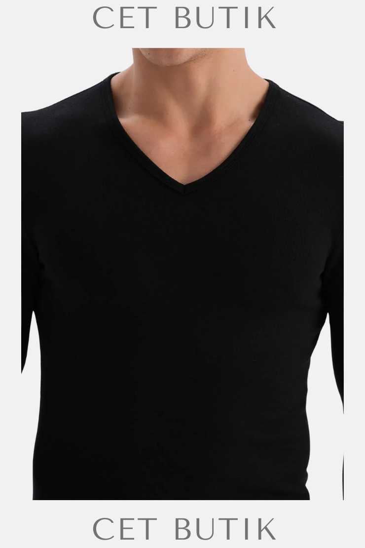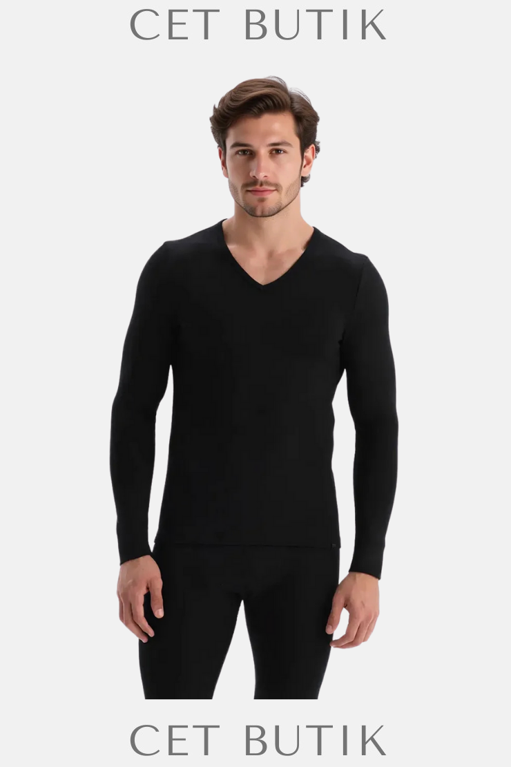 Termal kumaşı ile vücut ısısını dengeler, nefes alabilir yapısı cildi kuru tutar. V-yaka tasarımı gömlek ya da tişörtler altında estetiktir. Uzun kollu yapısı ise ek koruma sağlar. Sade bir görünüm sunar; hem günlük kullanımda hem dış giyim altında ideal bir içlik tercihi olabilir.