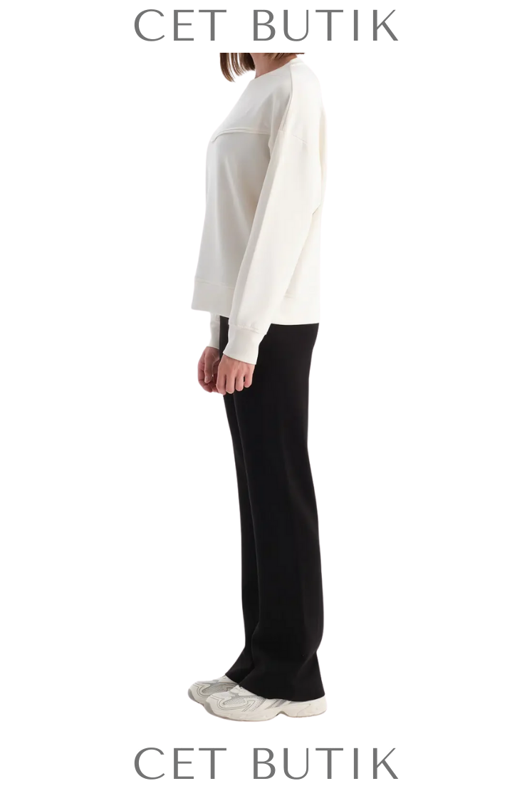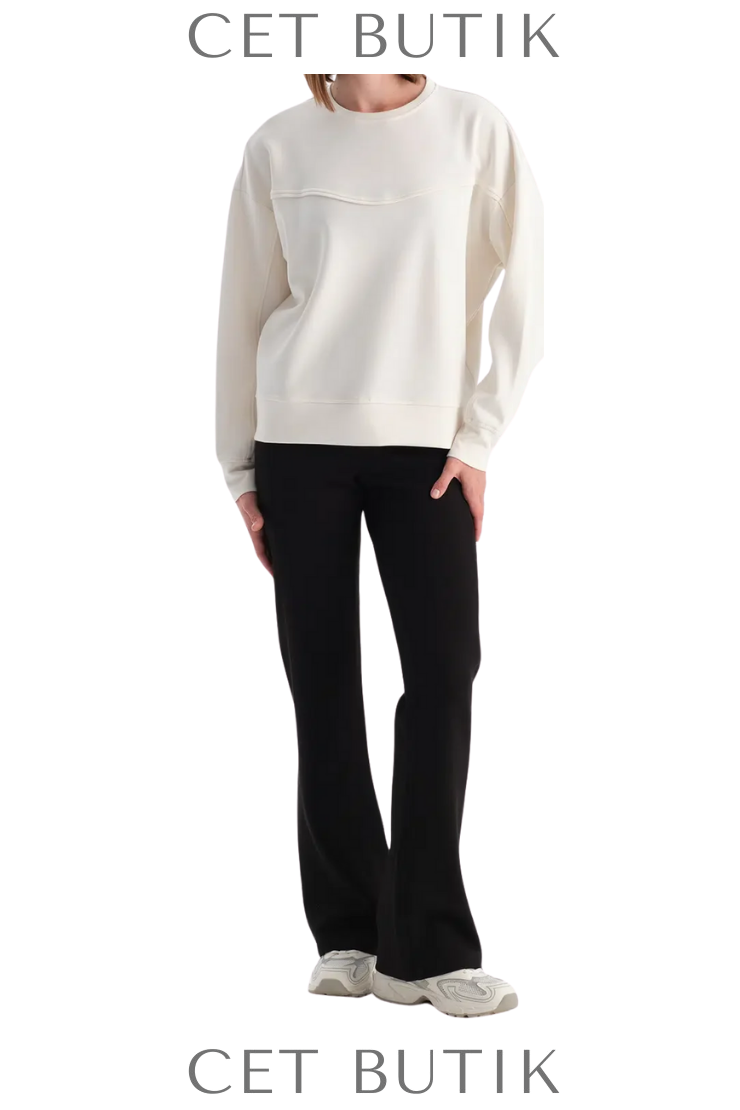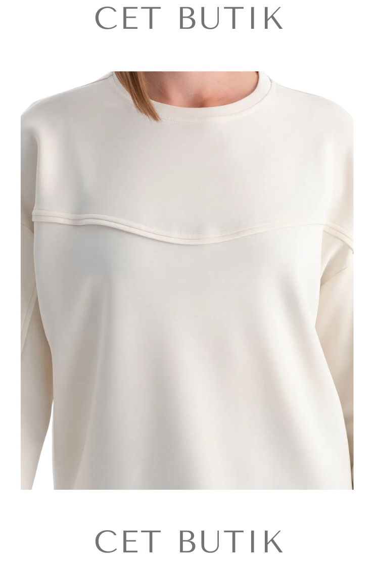 Dagi Ekru Kadın Modal Biye Detaylı Sweatshirt Şık & Rahat