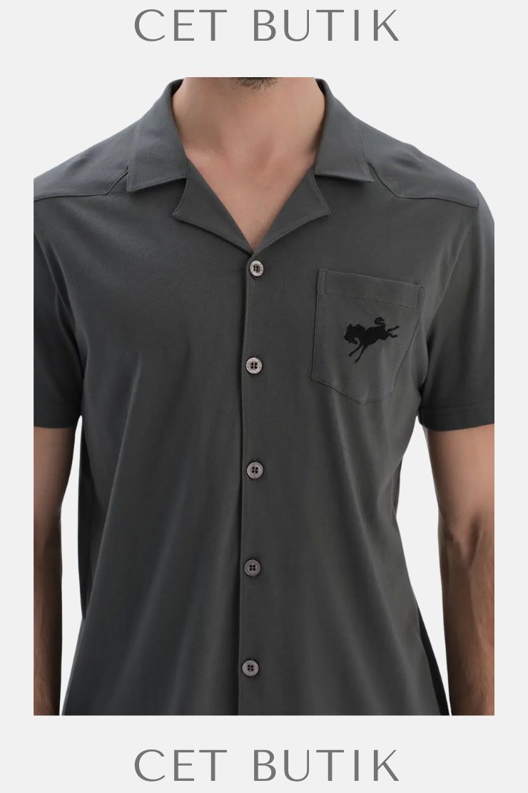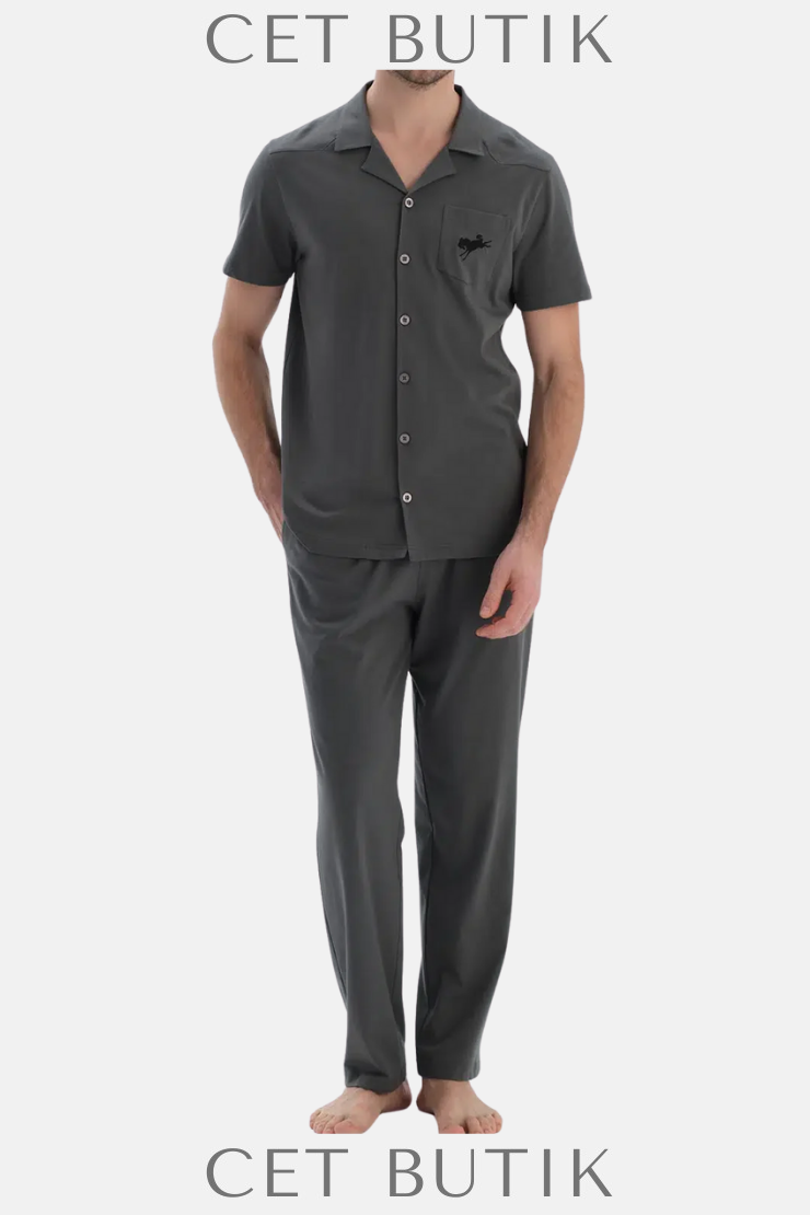 Dagi Gri Kısa Kollu Dikiş Detaylı Gömlek & Pantolon Pijama Takımı