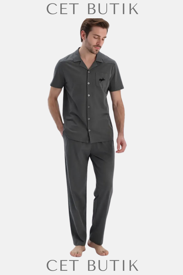Dagi’nin 25SM18581ME kodlu gri pijama takımı, modern kesim gömlek yaka kısa kollu üst ile pantolondan oluşur. Konfor ve stil arayanlar için %50 pamuk + %50 modal kumaş dokusuyla nem dengesi sağlar, yumuşak yapısıyla rahat bir uyku deneyimi sunar.