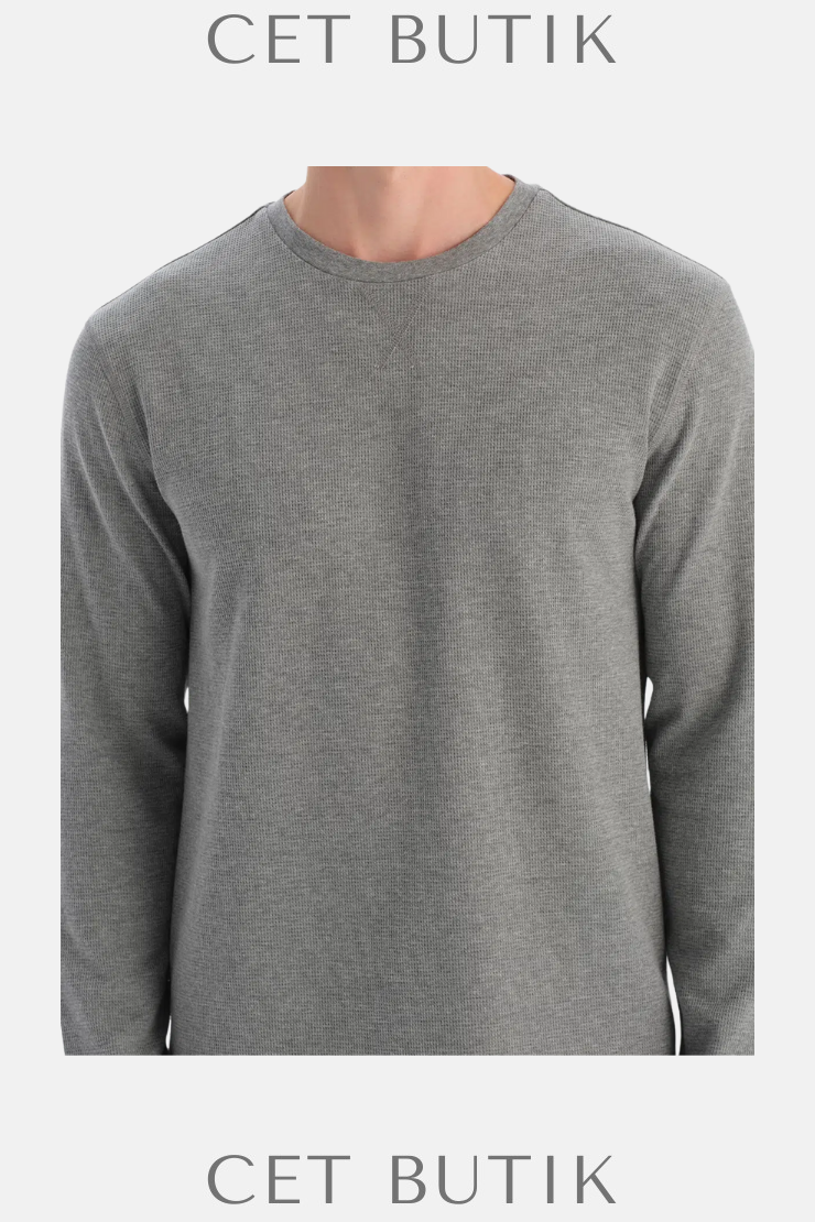 Dagi Gri Melanj Waffle Pijama Takımı – Uzun Kollu Tişört & Pantolon