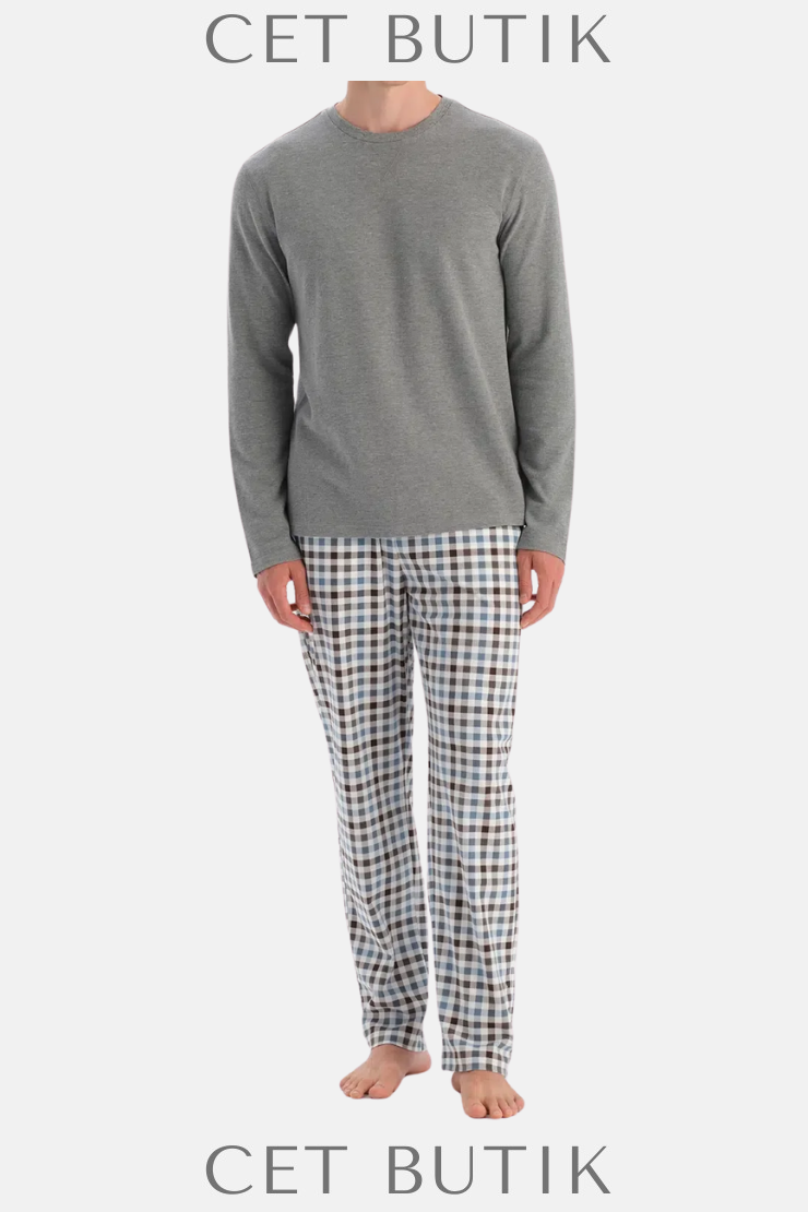 Dagi’nin 25WM18651ME model gri melanj waffle pijama takımı, dikiş detaylarıyla sade ama dikkat çekici bir görünüm sunar. Üstü uzun kollu, altı pantolon formunda tasarlanmış bu takım, waffle dokulu kumaşı sayesinde hava akışı sağlar.
