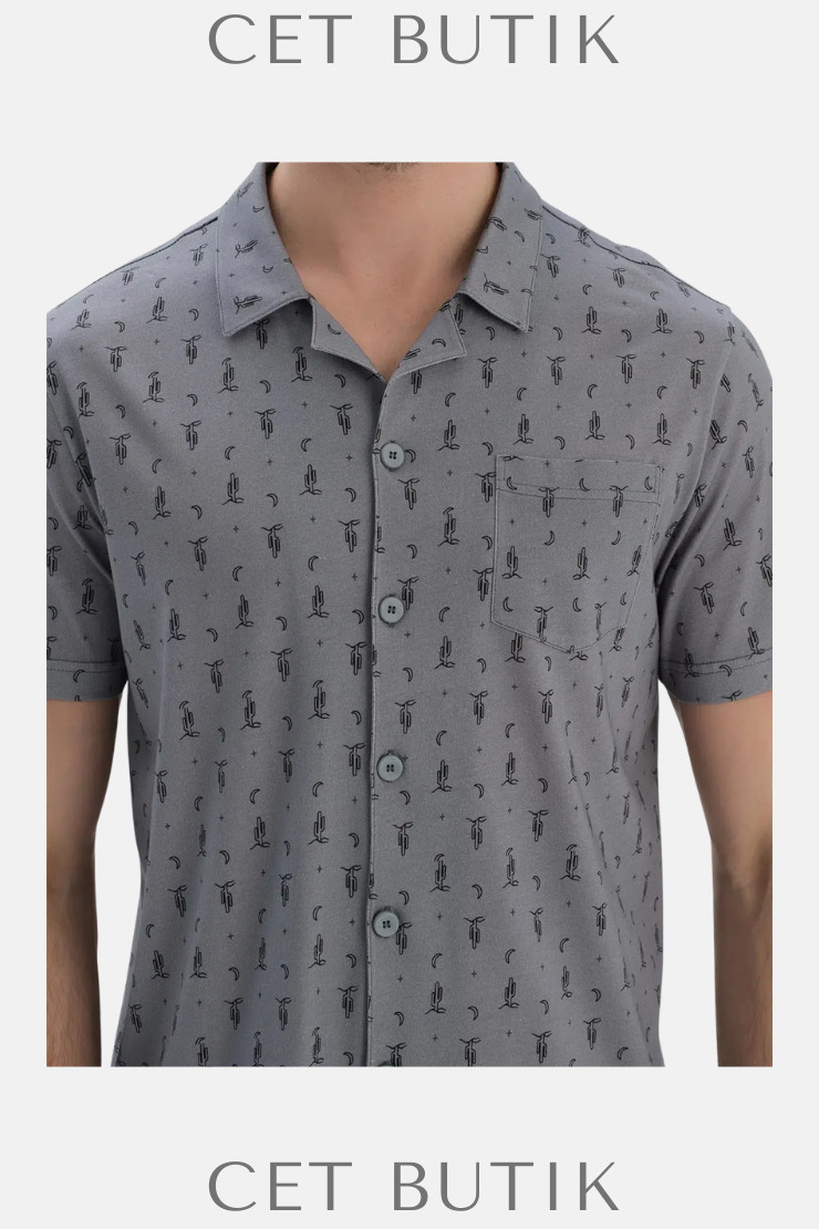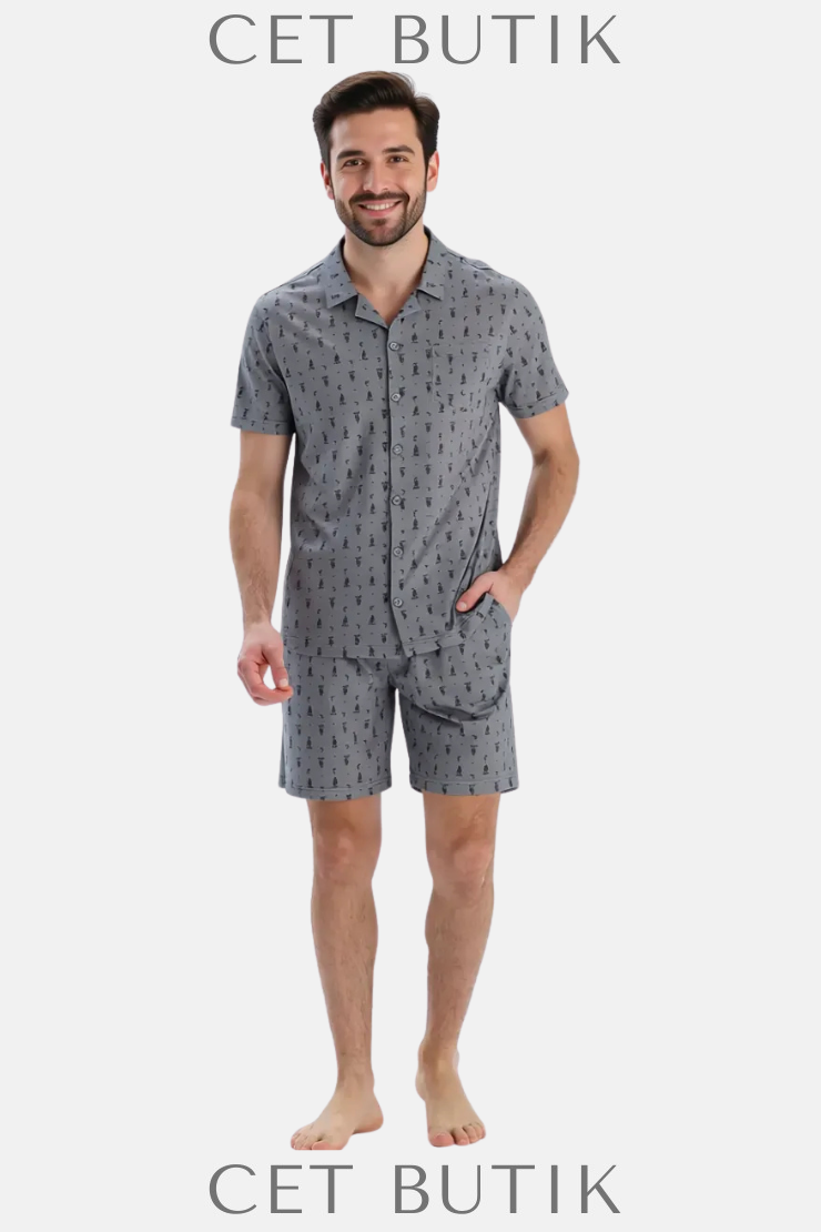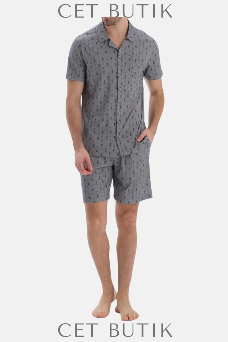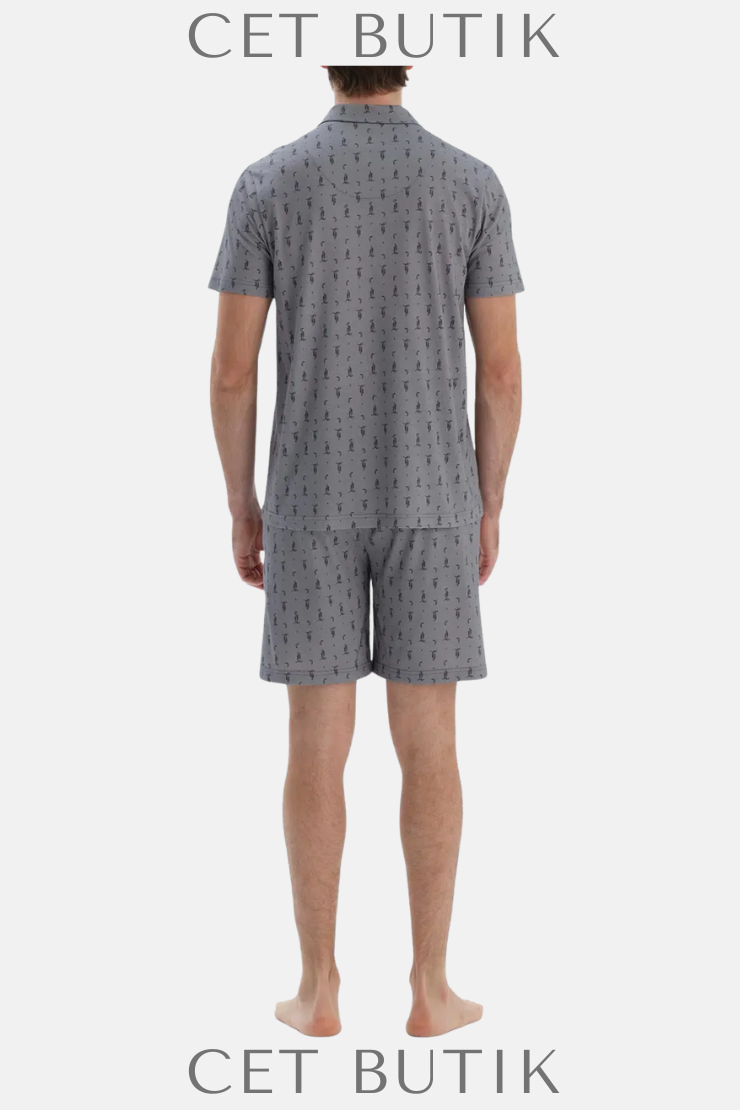 Dagi Gri Metraj Baskılı Gömlek & Şort Pijama Takımı