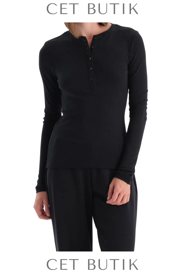 Dagi Kaşmir Modal Yarım Düğmeli Uzun Kollu Tişört