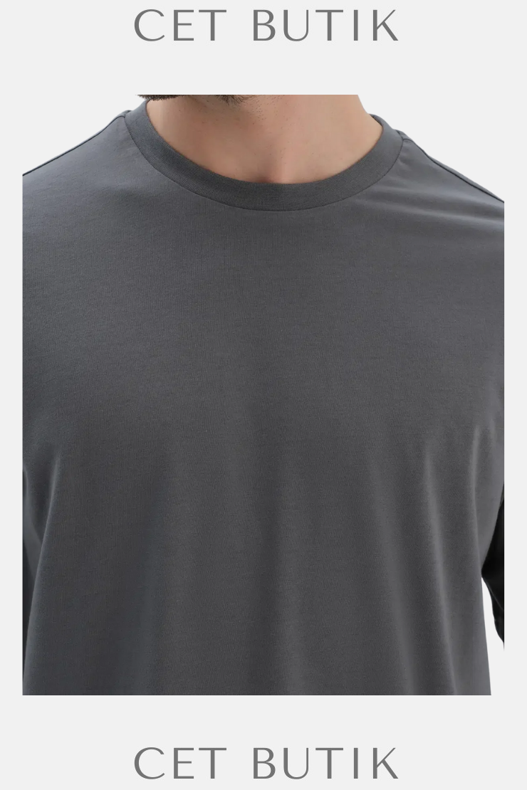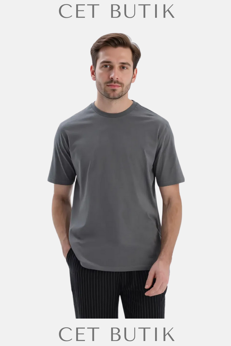 Dagi Koyu Gri Kısa Kollu Basic Tişört – Bisiklet Yaka