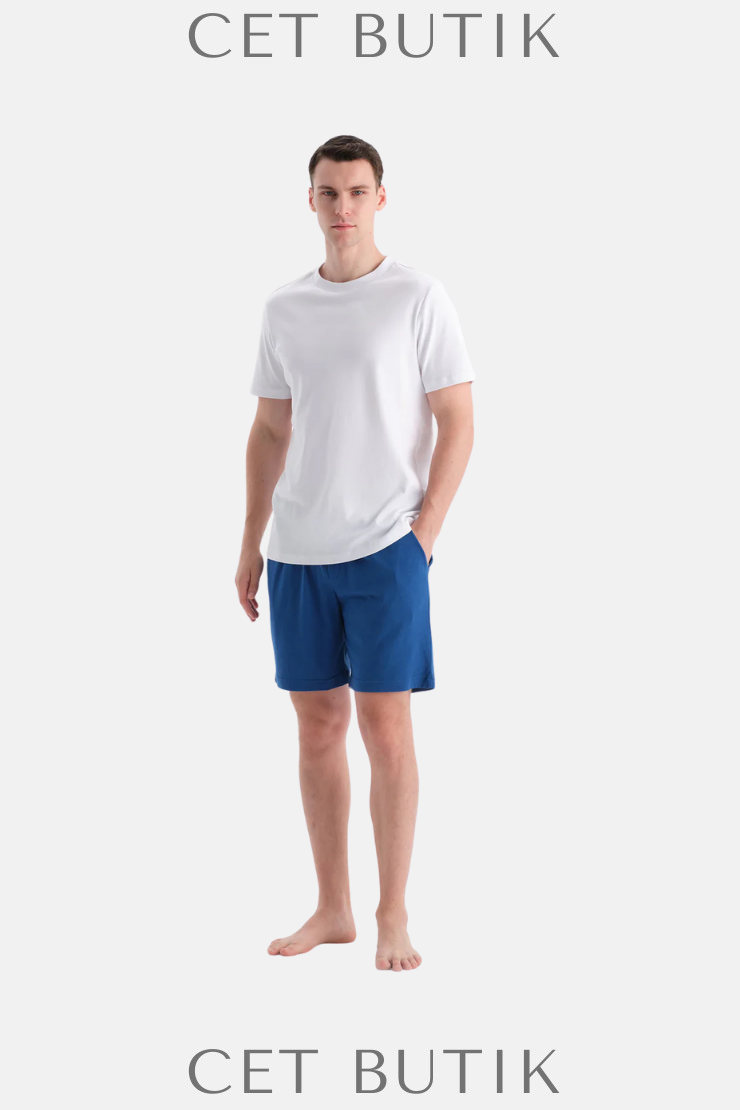Lacivert ve turkuaz tonuyla klasik bir hava verirken, evde, tatilde veya gündelik dışarı çıkışlarda rahatlıkla kullanılabilir. Normal bel ve konforlu kesimi ile uzun süre giyimde bile konforunu korur.