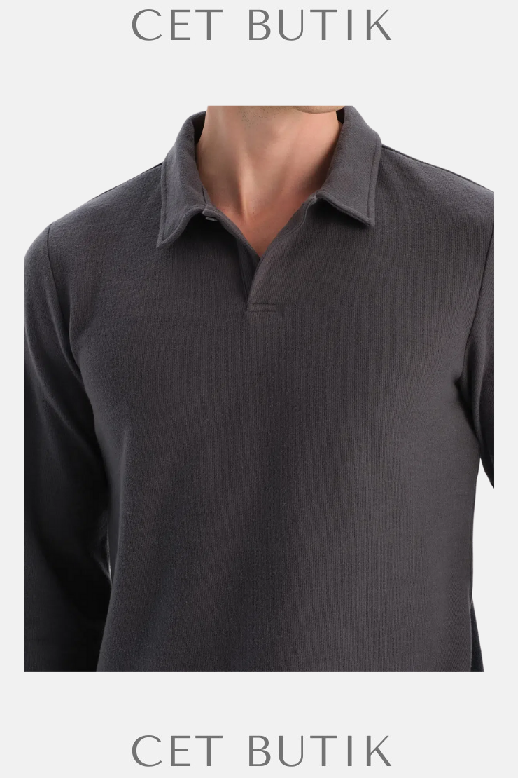 DAGI Patlı Yakalı Sweatshirt | Uzun Kollu, Antrasit, Regular Fit