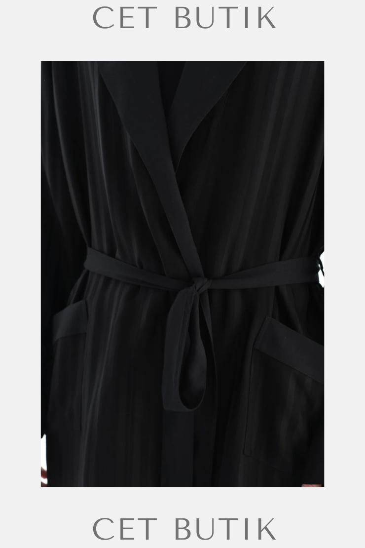 Dagi’nin groom koleksiyonundan Siyah Çizgili Dokuma Groom Sabahlık ile evde ve uyku zamanlarında şıklığı yakalayın. Şal yakalı, uzun kollu ve %100 viskon dokuma kumaşıyla hafif; nefes alabilir ve konforlu. Çizgili deseni ile klasik bir stil sunar. Her mevsim kullanılabilir; özellikle sabahlık/sezonluk ev giyimi için idealdir.