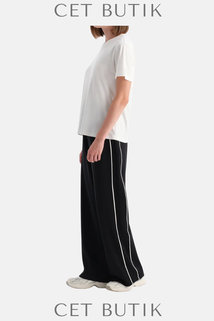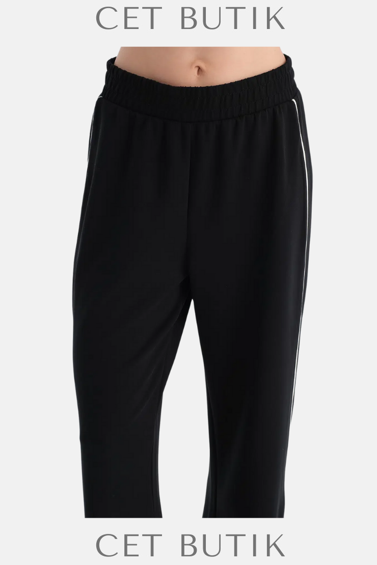 Dagi Siyah Kadın Modal Çift Biye Detaylı Eşofman Altı