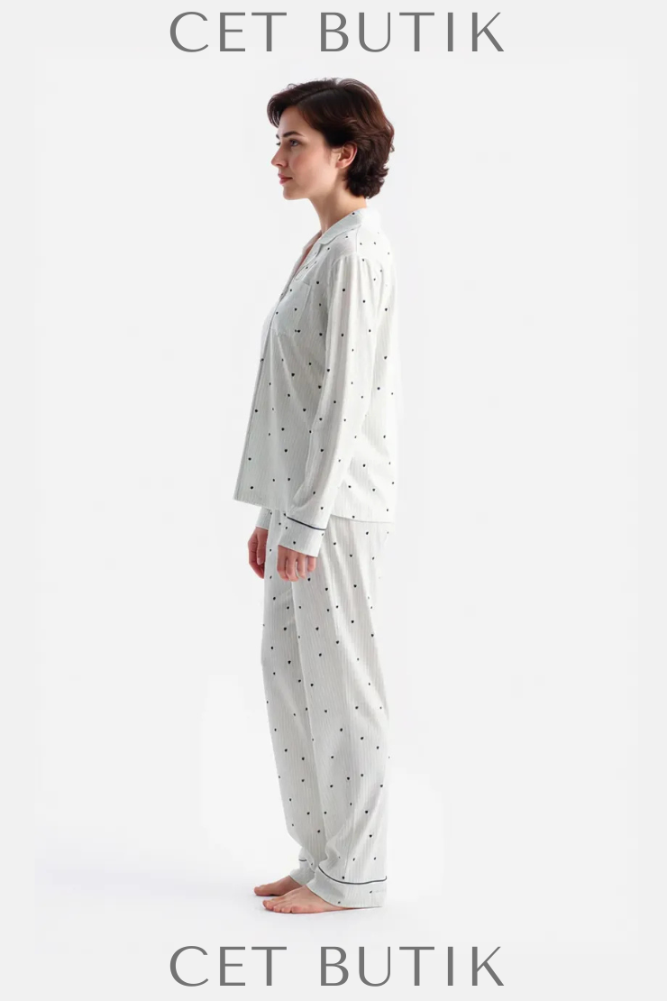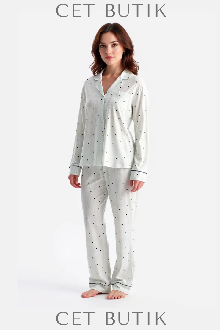 Dagi’nin kadın ev giyimi koleksiyonundaki su yeşili çizgi ve kalp desenli gömlek & pantolon takımı, modern grafik desenler ve konforun buluştuğu süper bir ev şıklığı seçeneğidir. Üst kısmın gömlek yaka ve kısa kol tasarımı, alt parçadaki rahat kesimle birleşerek dengeli bir görünüm sunar. %50 pamuk ve %50 modal süprem kumaşı, hafif ve esnek yapısıyla cilde nazikçe uyum sağlar, nefes alabilirlik ve hareket özgürlüğü garantiler. Fiyat avantajına rağmen stokta olmaması, bu modeli takibe alınması gereken koleksiyon parçalarından yapıyor.