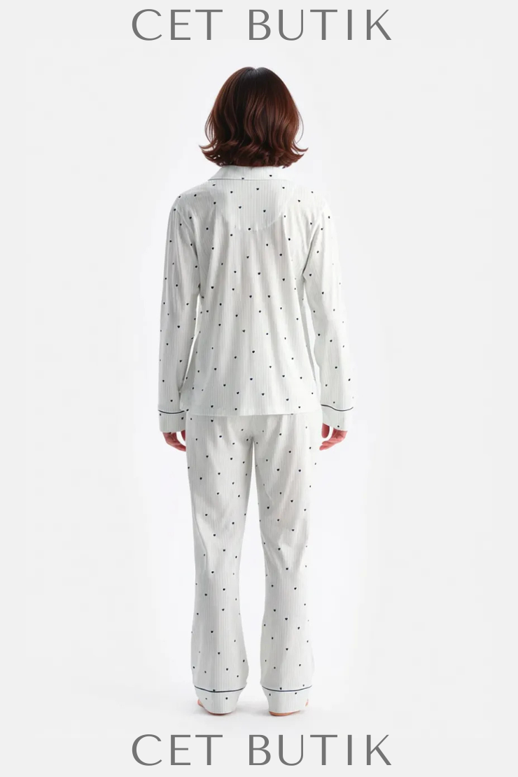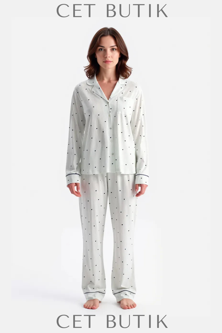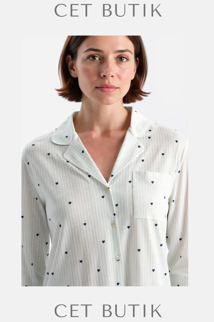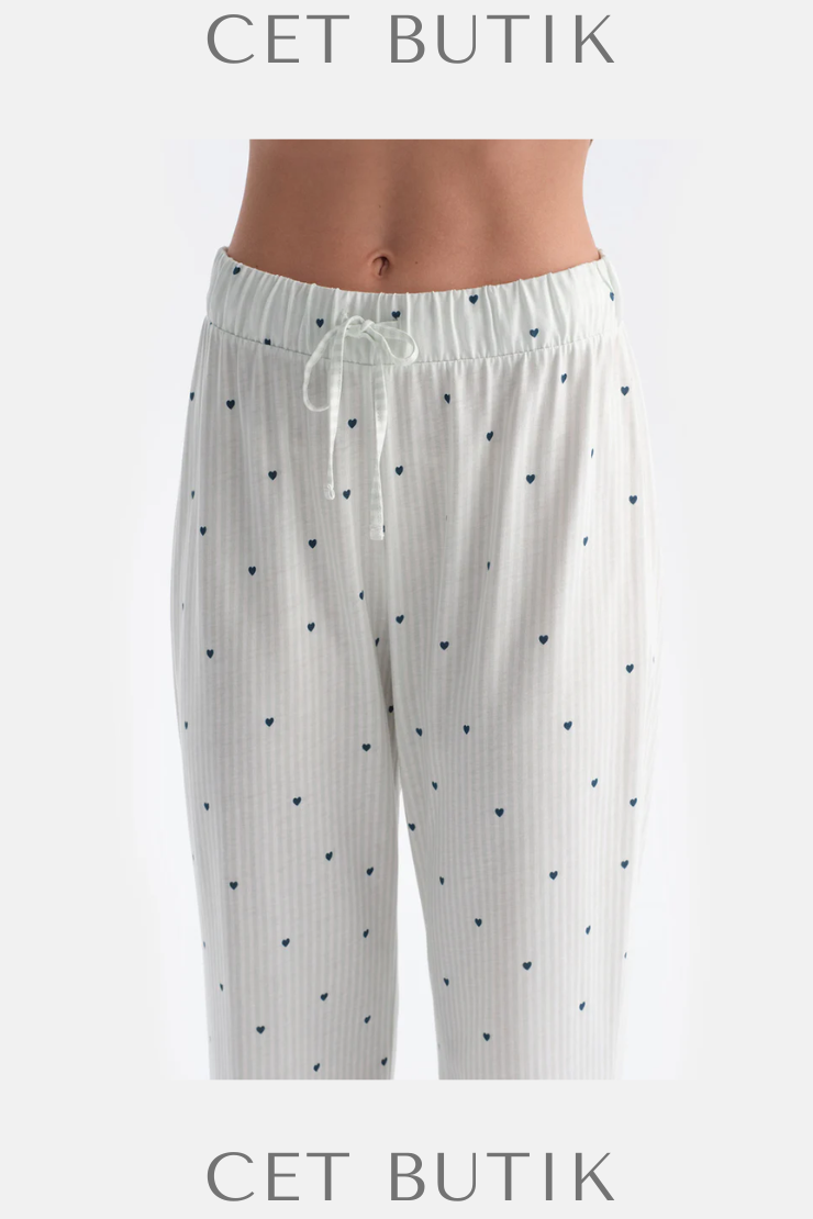 Dagi Su Yeşili Çizgili ve Kalp Desenli Gömlek & Pantolon Takımı – Süprem Kumaş