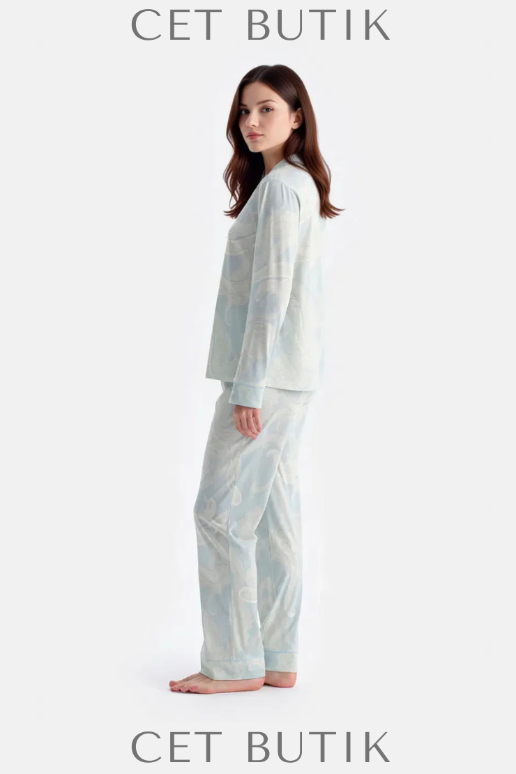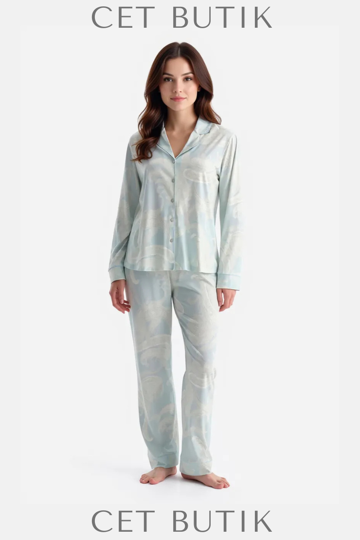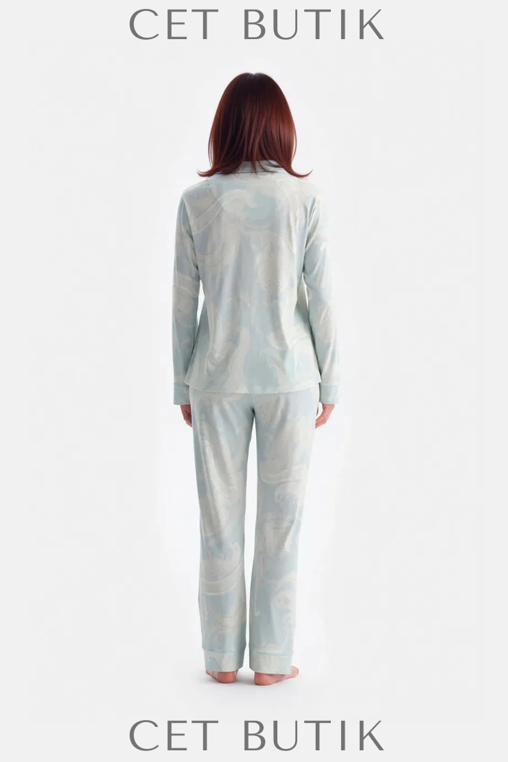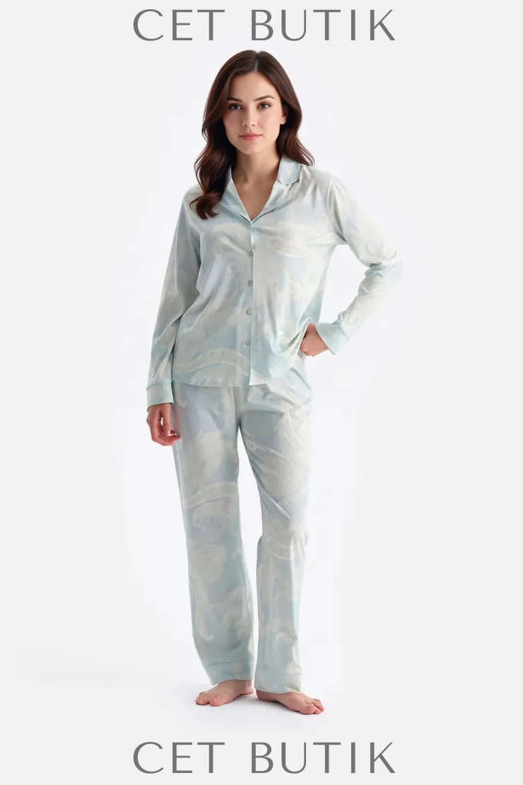 Dagi Su Yeşili Şal Desenli Gömlek & Pantolon Takımı – Süprem Rahatlık