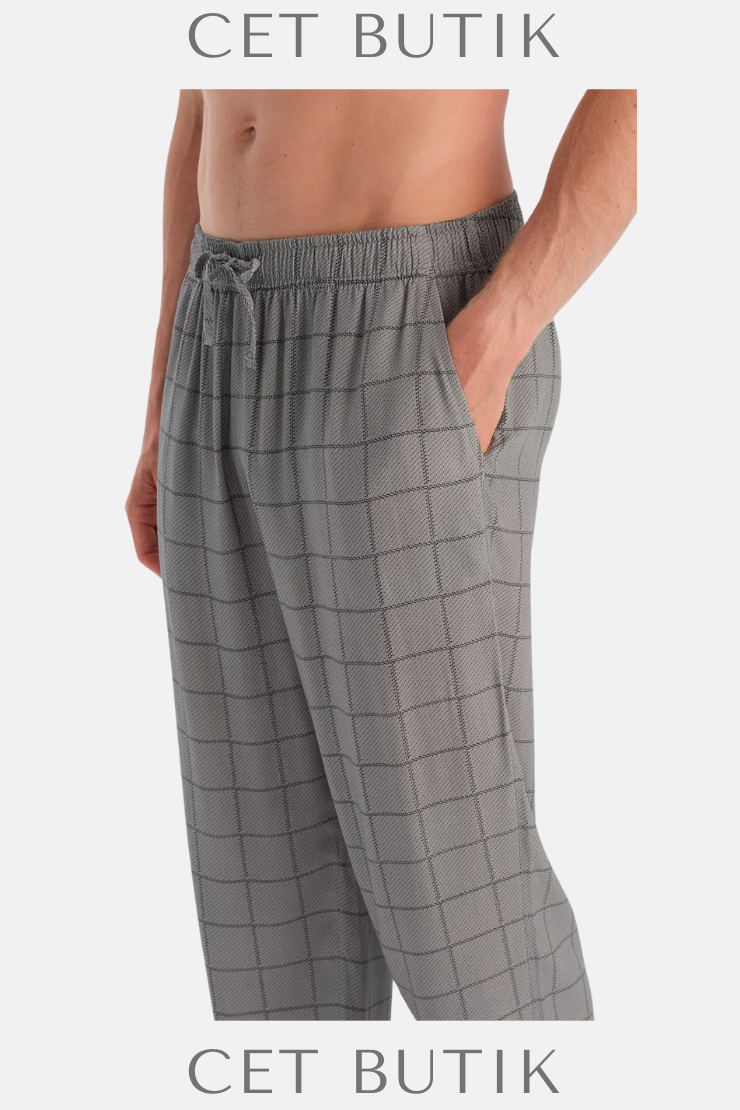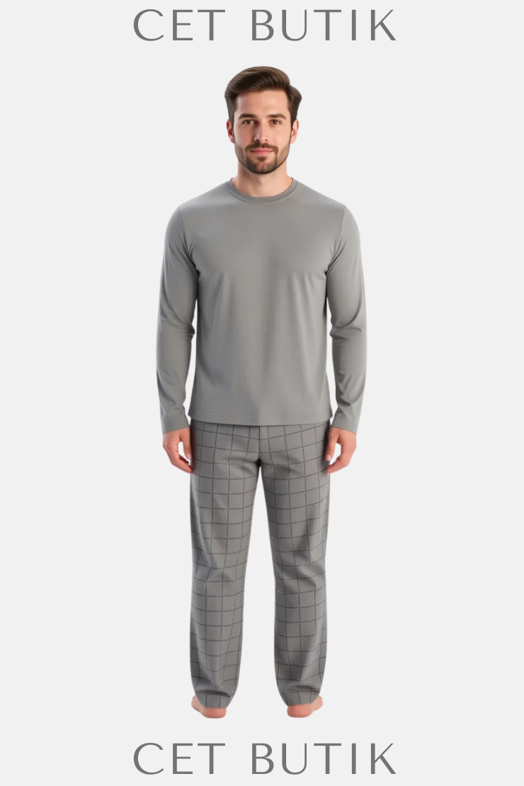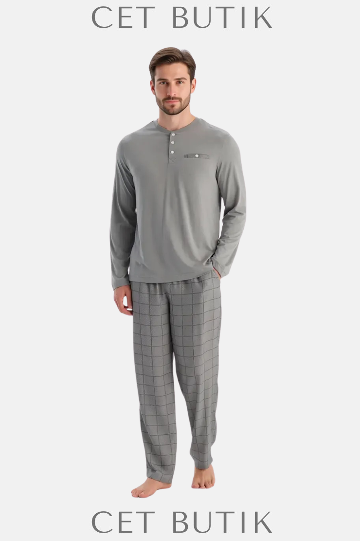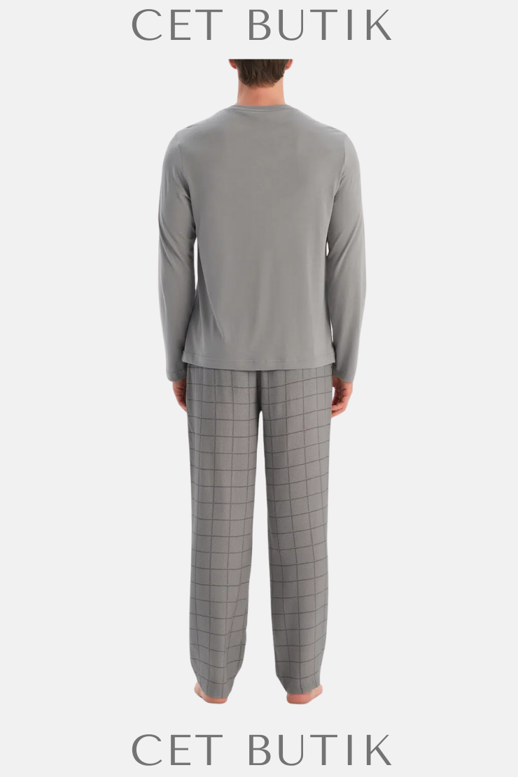 Dagi Uzun Kollu Pat ve Cep Detaylı Kadın Tişört Pantolon Takım – Gri Melanj