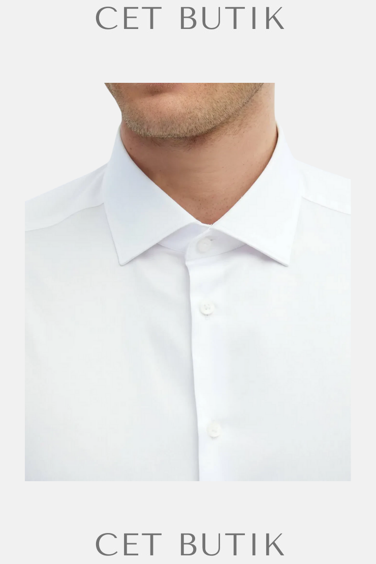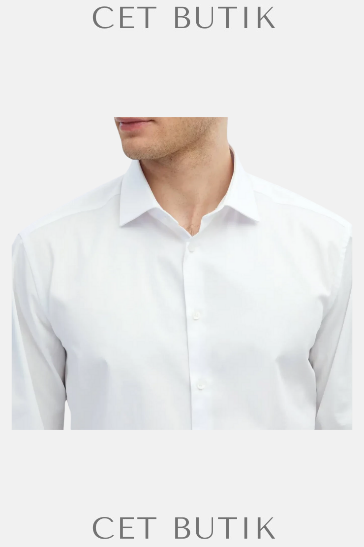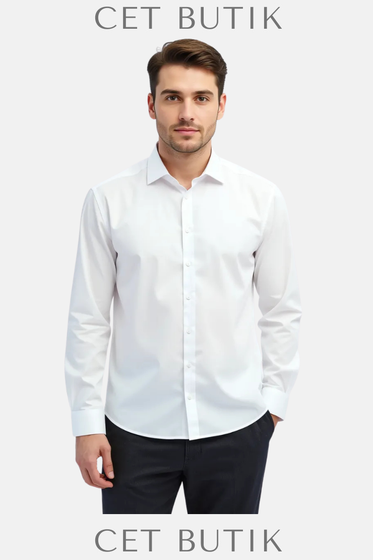 Kip Beyaz Klasik Gömlek – %100 Pamuk, Regular Fit Dokuma Kesim