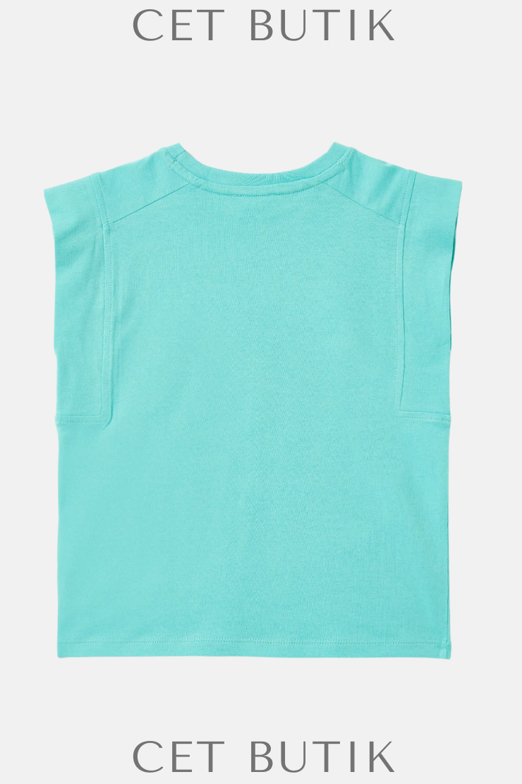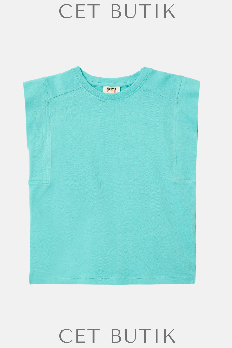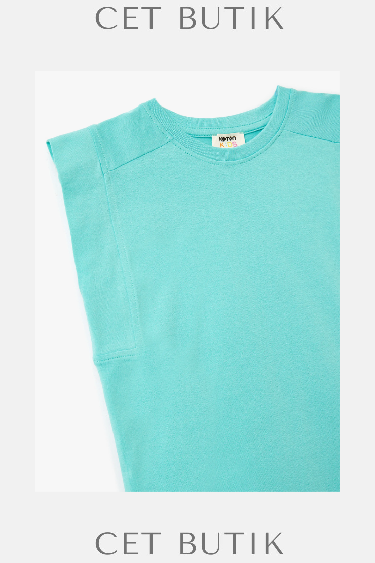 Koton Turkuaz Kolsuz Bisiklet Yaka Basic Tişört – Pamuklu