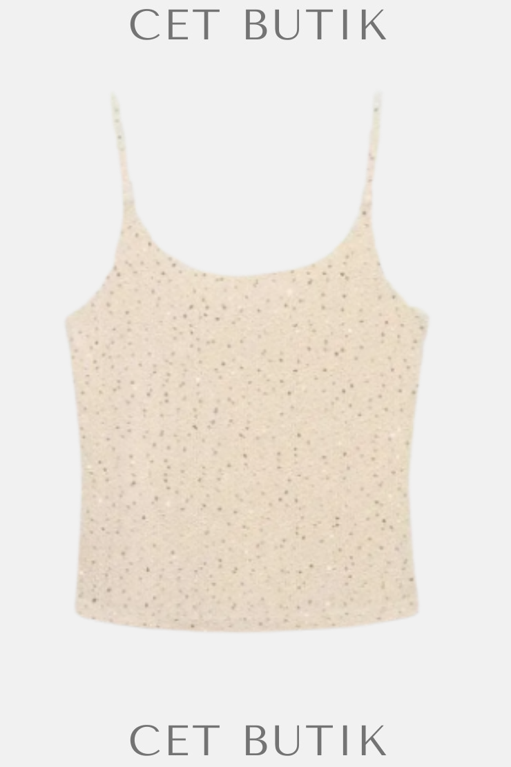 Mango’nun Askıları Pullu Bluz modeli, slim fit kesimiyle vücuda oturan bir siluet sunar. %87 polyester ve %13 pamuk kumaş yapısıyla hafif parlaklık ve konfor dengesi sağlar. Askılı tasarımı ve payet işlemeleriyle şık ve dikkat çekici bir görünüm kazanır. Cepsiz tasarım, ekru (off-white) tonuyla kombinlerde geniş uyum sağlar. Davet, gece veya özel gün kombinlerinin farkını ortaya koyacak bir üst tercihidir.