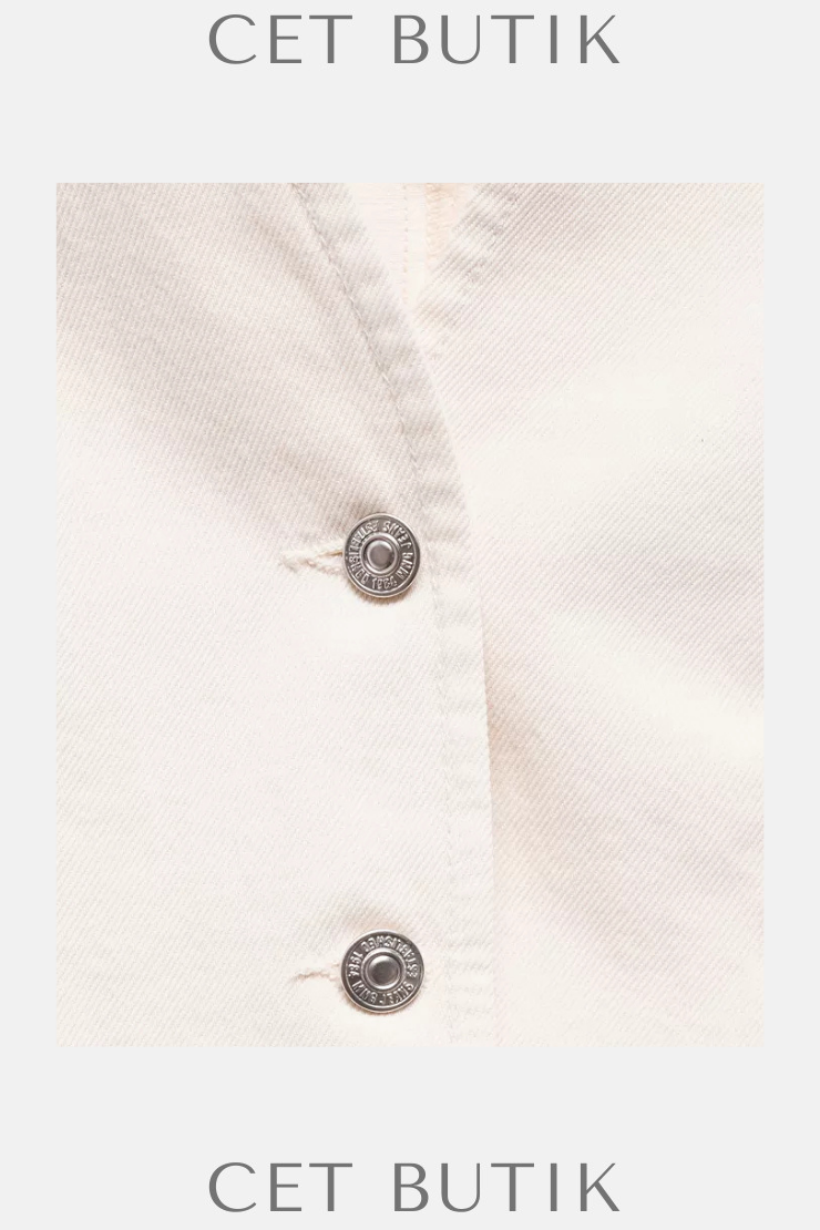 Mango Buttoned Denim Gilet Vest – %100 Pamuk, Kolsuz