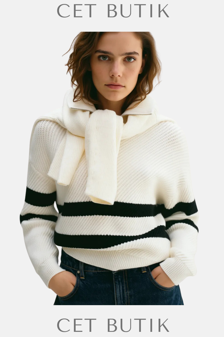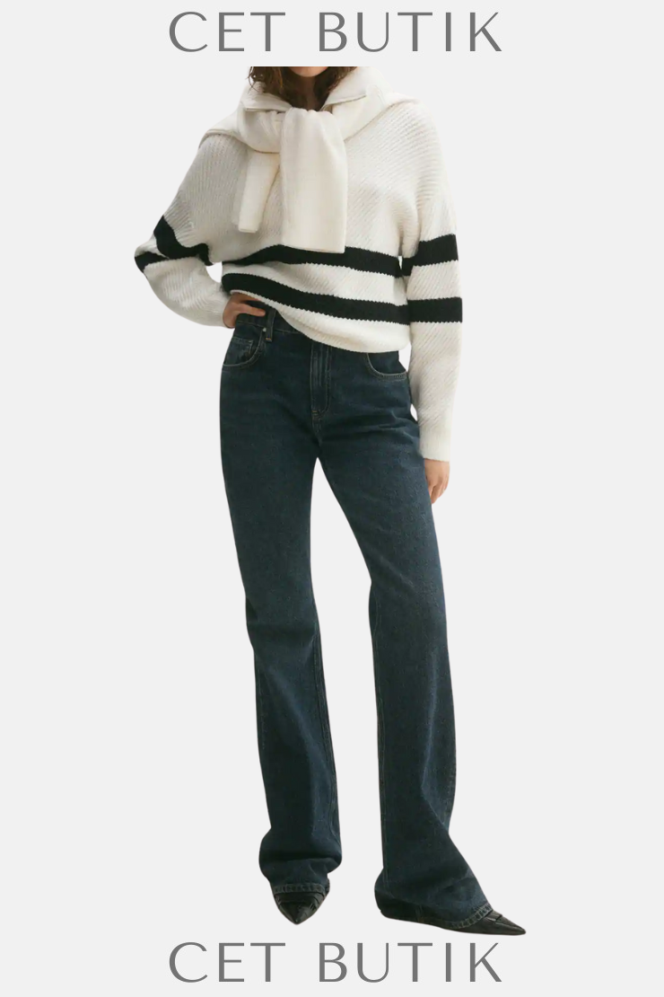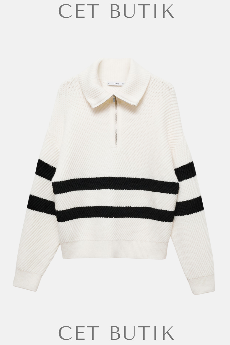 Mango’nun 87064071 kodlu çizgili fitilli örme kazağı, klasik çizgileri modern doku ile harmanlıyor. İnce örgü yapısı ve elastik dokusu ile hem konforlu hem de şık bir görünüm sağlar. Yaka, manşet ve kol kenarlarında ribana detayları ile tarzını güçlendirir. Jean, şort ya da kumaş pantolonlarla kombinlenerek çok yönlü bir stil sunar.