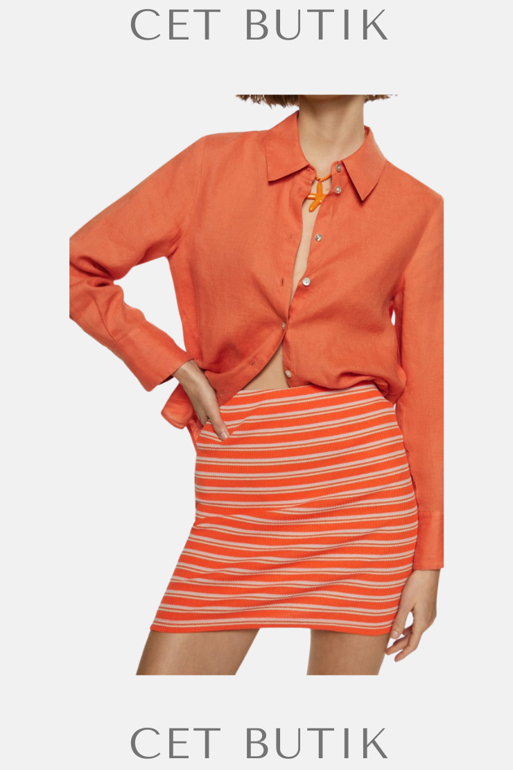 Mango Çizgili Mini Etek – Çizgili Kısa Etek