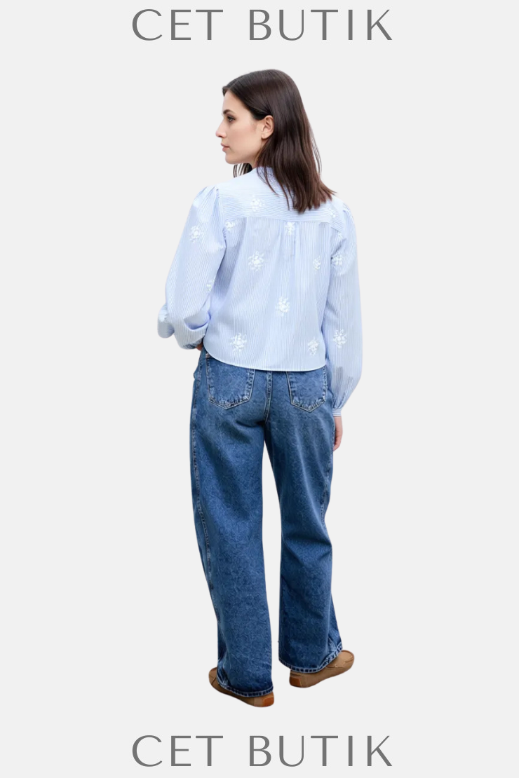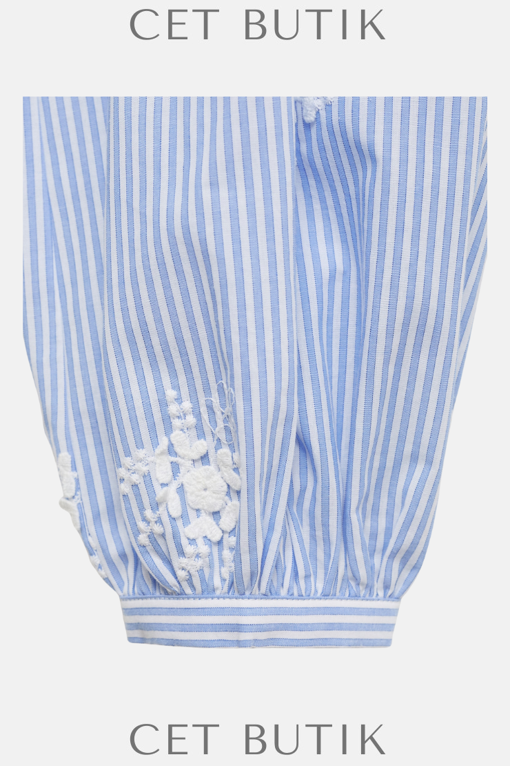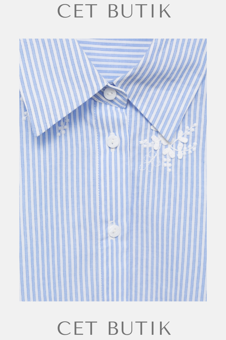 Mango Flower Nakışlı Çizgili Gömlek – Sky Blue