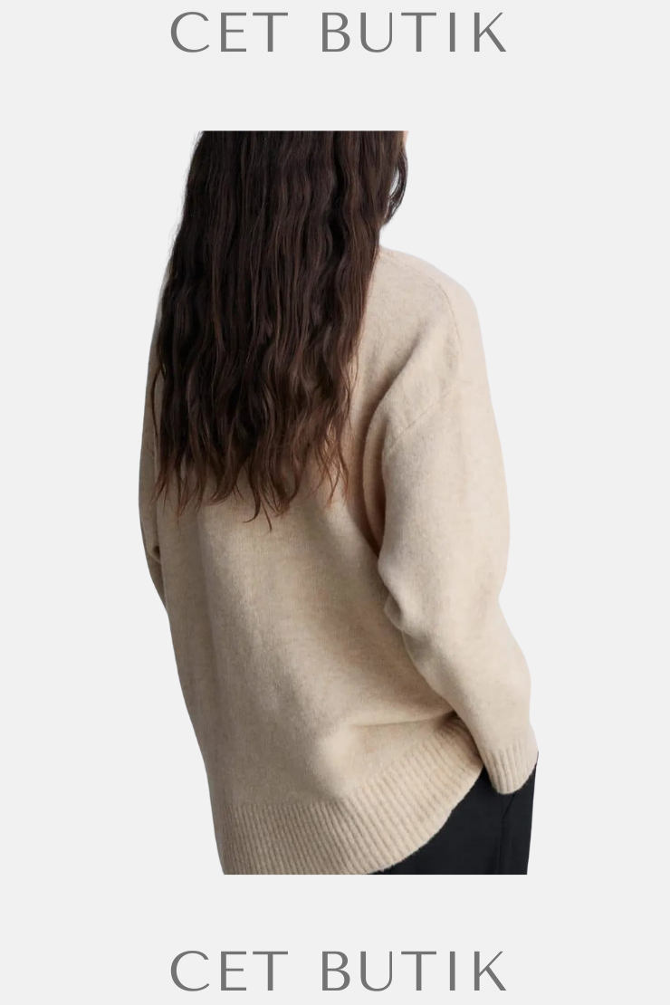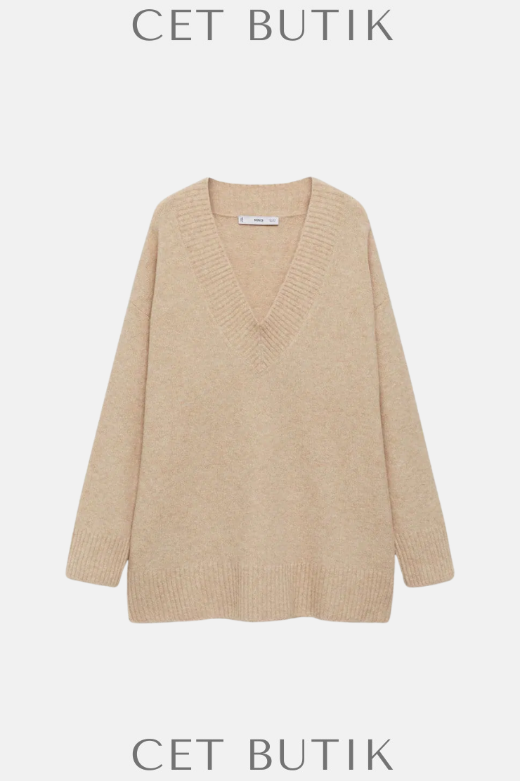 Mango Kadın Sivri Yaka Oversize Kazak Bej