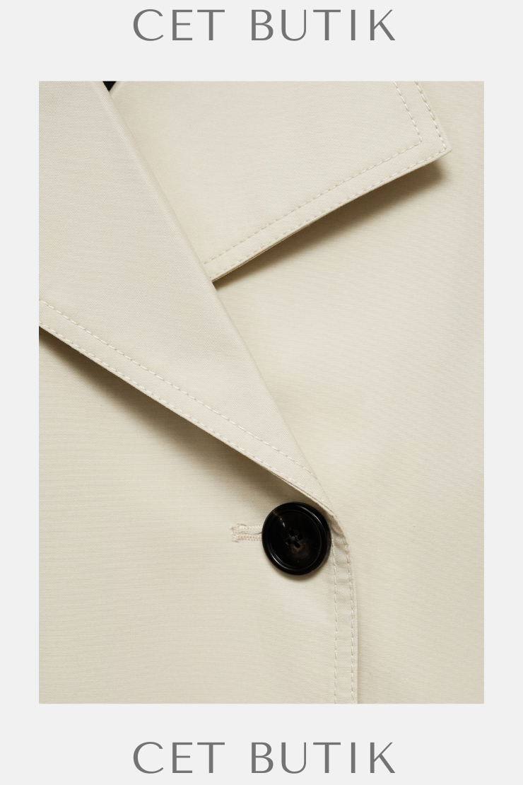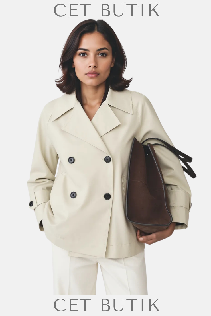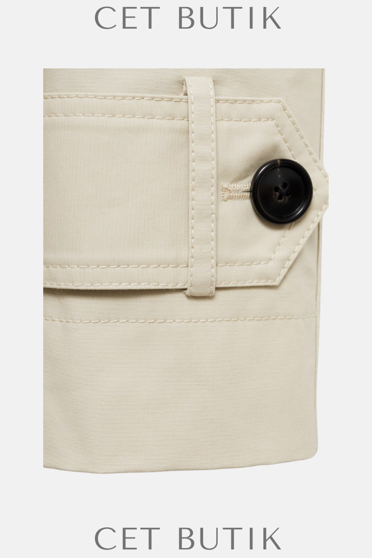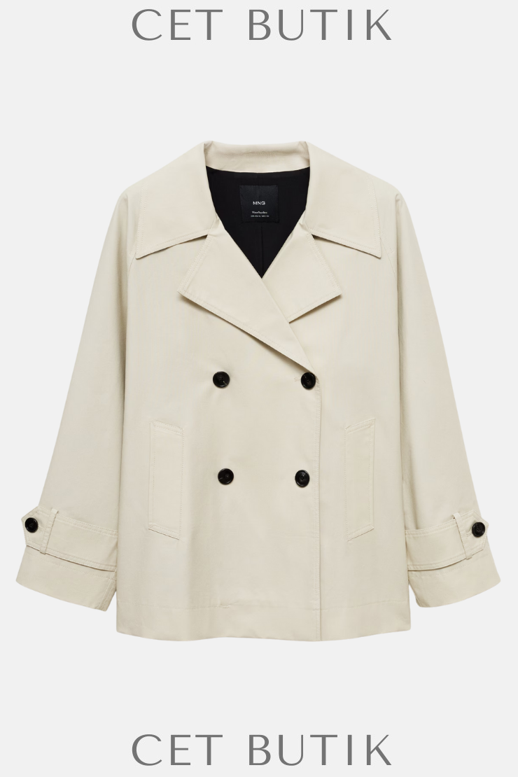 Mango’nun Short Double-Breasted Trench Coat modeli, %100 pamuk kumaşıyla klasik trençkot stilini modern dokunuşlarla yeniden yorumluyor. Straight kesimi sayesinde siluetinize zarif bir görünüm katar. Kruvaze yaka ve çift sıra düğmeli kapama detayı ile güçlü bir duruş sergiler. Uzun kollu yapısı, manşet kayış detayları ve yan cepleri işlevselliği artırırken, pastel gri rengi ile pek çok kombinle uyum sağlar. İç astarı sayesinde rahat taşıma hissi verir. Geçiş mevsimleri için ideal bir dış giyim parçasıdır.