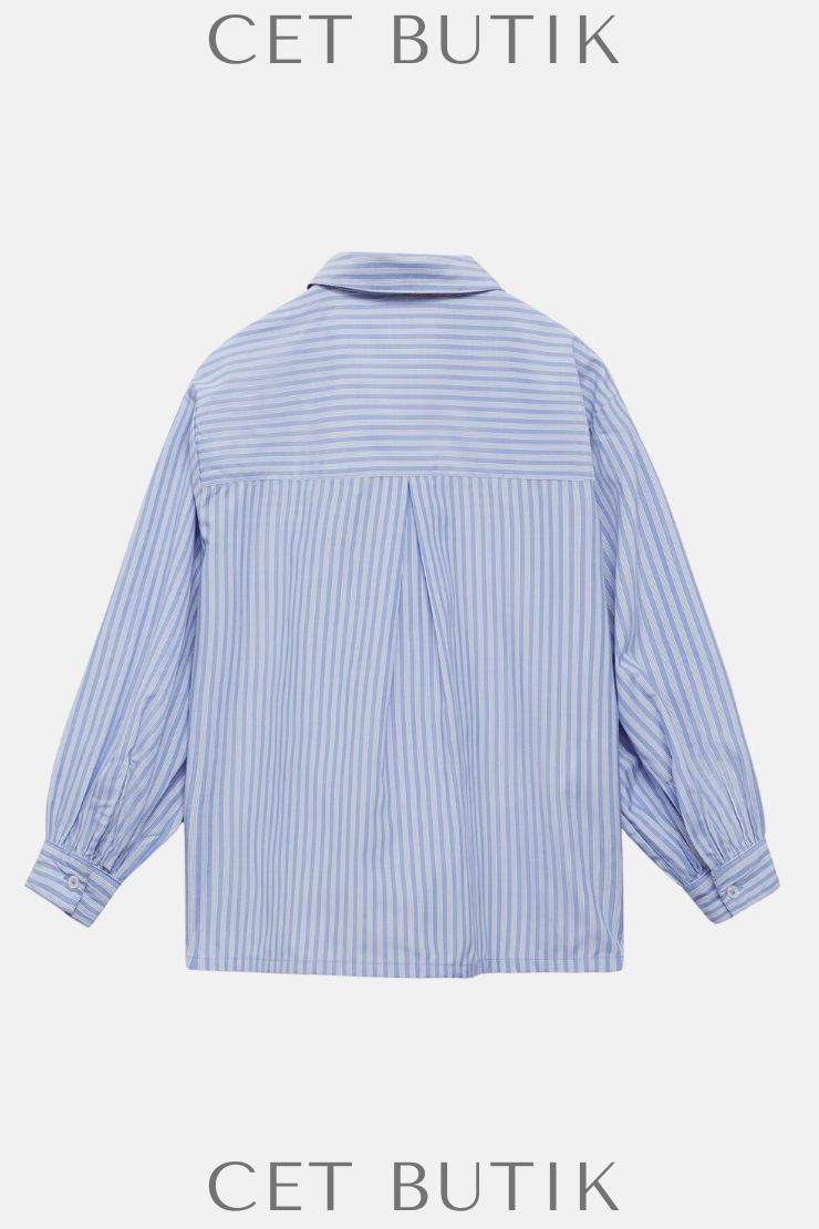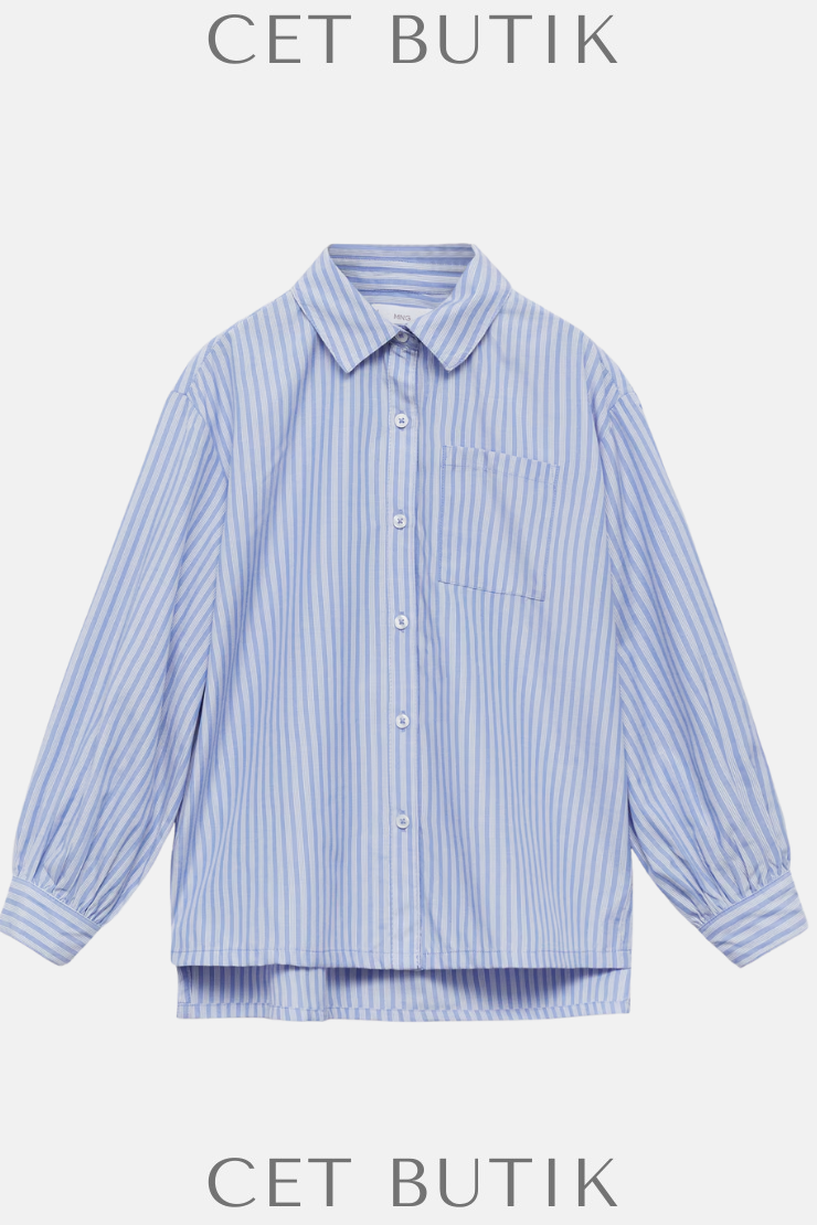 Mango’nun Striped Shirt modeli, %100 pamuk kumaşı ile yumuşak ve nefes alabilen bir yapı sunar. Düz kesim tasarımıyla sade ve şık bir duruş yakalar. Mavi çizgili baskılı deseni, göğüs cebi ve klasik gömlek yaka detayları ile dikkat çeker. Uzun kollu olması, düğmeli manşetleri ve önden düğme kapama özelliği ile fonksiyonel bir tasarımdır. 6-14 yaş arası beden seçenekleri ile genç kızların günlük giyiminde ideal bir tercih olabilir.