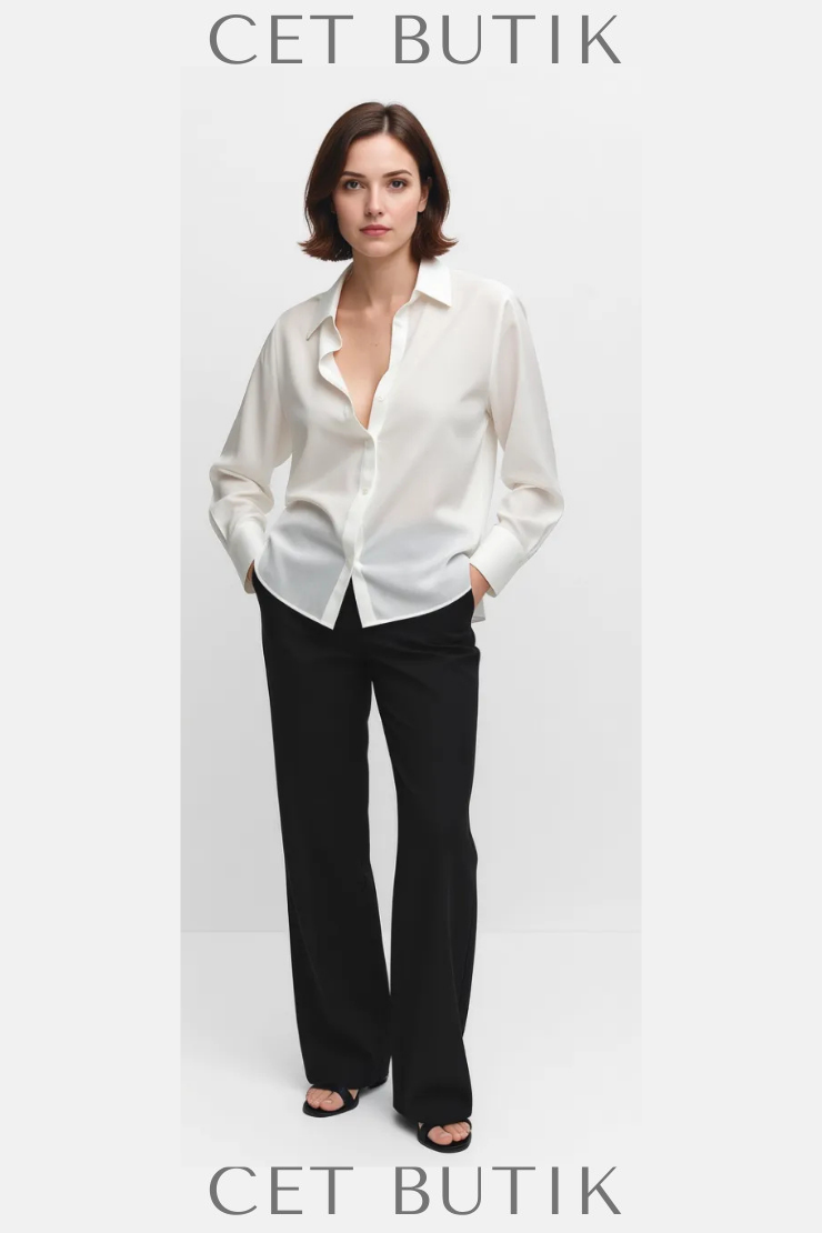 Zarif ve hafif bir şıklık arıyorsanız, Lyocell Fluid Shirt tam size göre. Lyocell kumaşı sayesinde akışkan bir yapı sunar; düz kesimi ve uzun formuyla klasik çizgileri modern yorumla birleştirir. Gömlek yaka, uzun kollu ve önden düğmeli kapama detayları ile ofis ve şık günlük kullanım için ideal bir parça.