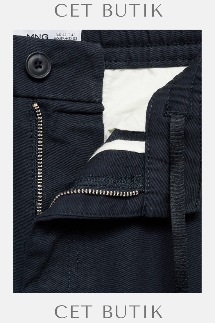 Bu Mango pantolon, %100 pamuk kumaştan üretilmiş olup regular fit kesimiyle rahat bir kullanım sunar. Elastik beli ve ayarlanabilir bağcık detayı ile konfor ön plandadır. Fermuar + düğme kapaması ve kemer halkaları ile klasik pantolon özelliklerine sahiptir. Yan cepleri ve arka cepleriyle işlevsellik sağlar. Orta kahverengi (“Medium Brown”) rengi ile kombinlerde kolay uyum sağlar.