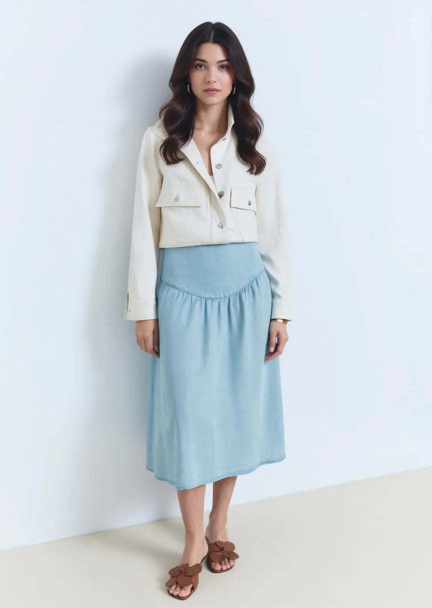 Mango Yumuşak Denim Midi Etek – Büzgülü Detay