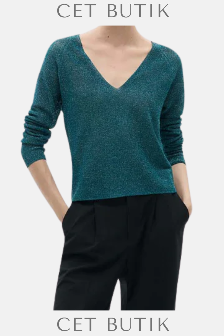 Mango’nun 8447274240749 barkodlu lureks kumaştan üretilmiş V yaka kazak modeli, zarif parıltılı dokusu ile günlük şıklığa sofistike bir dokunuş katıyor. Yeşil rengiyle canlı bir görünüm sunan bu kazak, hem iş stilinde hem de akşam kombinlerinde rahatlıkla kullanılabilir. Yumuşak ve hafif yapısıyla gün boyu konfor sağlar. Jean veya eteklerle kombinlendiğinde modern bir stil yaratır.