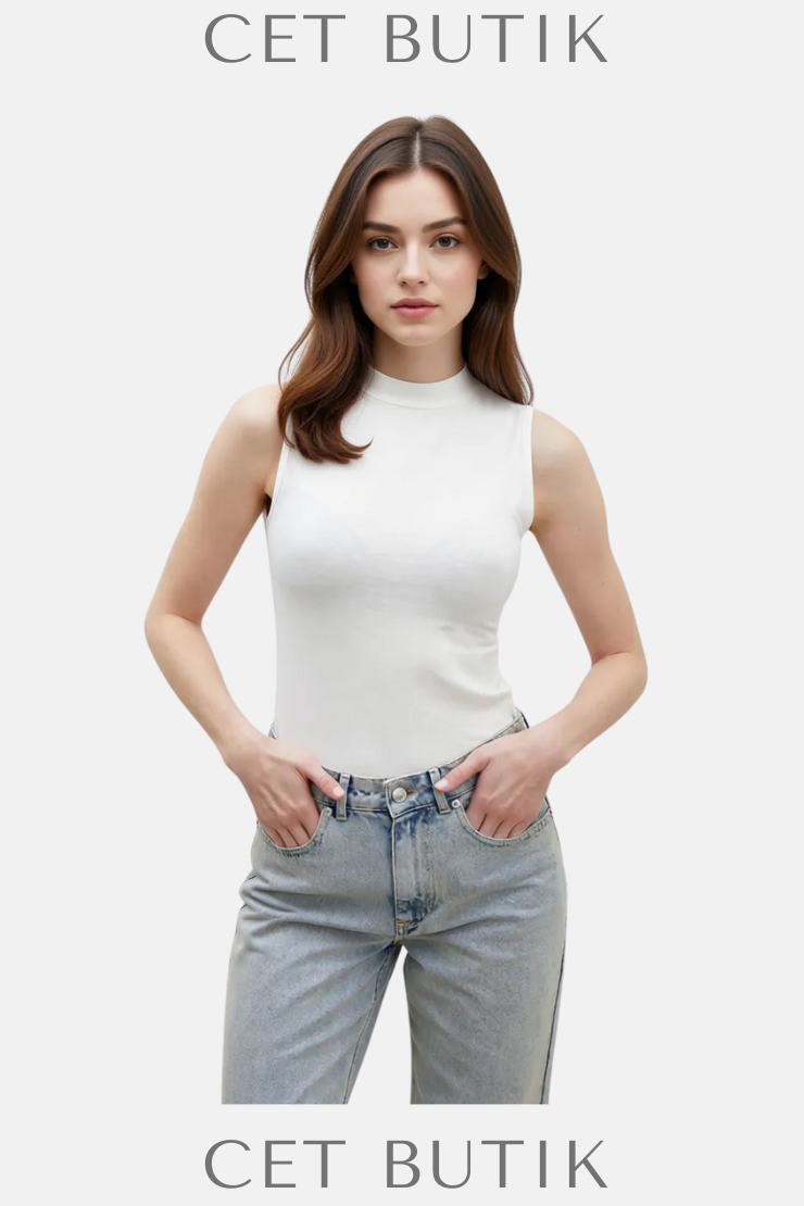 Manuka Pamuklu Sıfır Kol Body – Ekru
