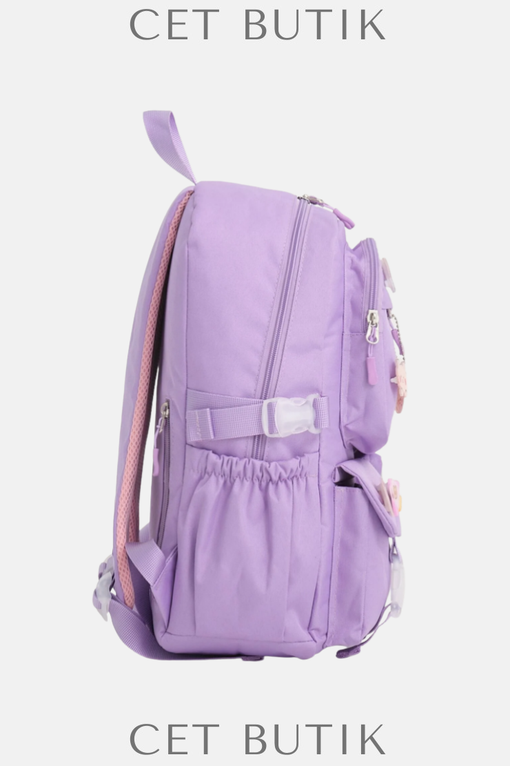 Roxbros Kawaii Kore Tarzı Lila Aksesuarlı Sırt Okul Çantası – Unisex Çocuk