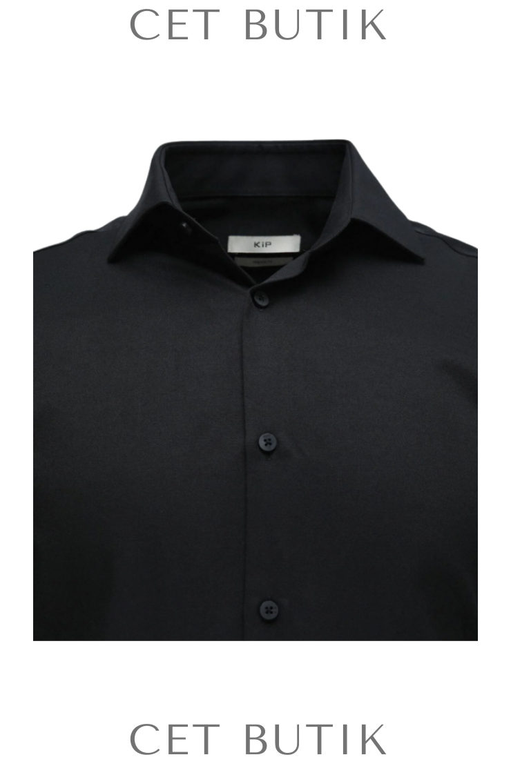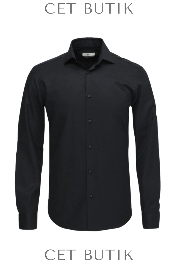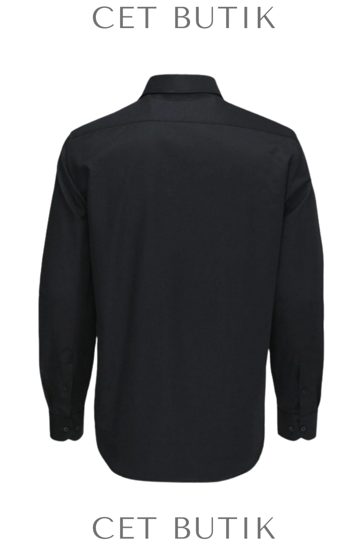 Kip Siyah Klasik Uzun Kollu Gömlek