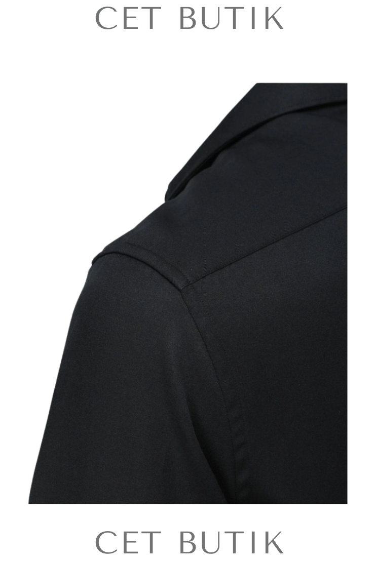 Uzun kollu klasik gömlek tasarımı, düz dokumalı kumaşı ve siyah tonu sayesinde hem iş hem günlük kombinlerde kolaylıkla kullanılabilir.