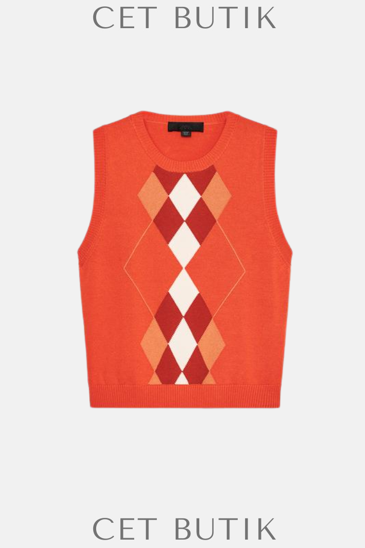 Zara Kadın Diamond Örgü Triko Yelek – Ekru Tonları | Zarif ve Modern